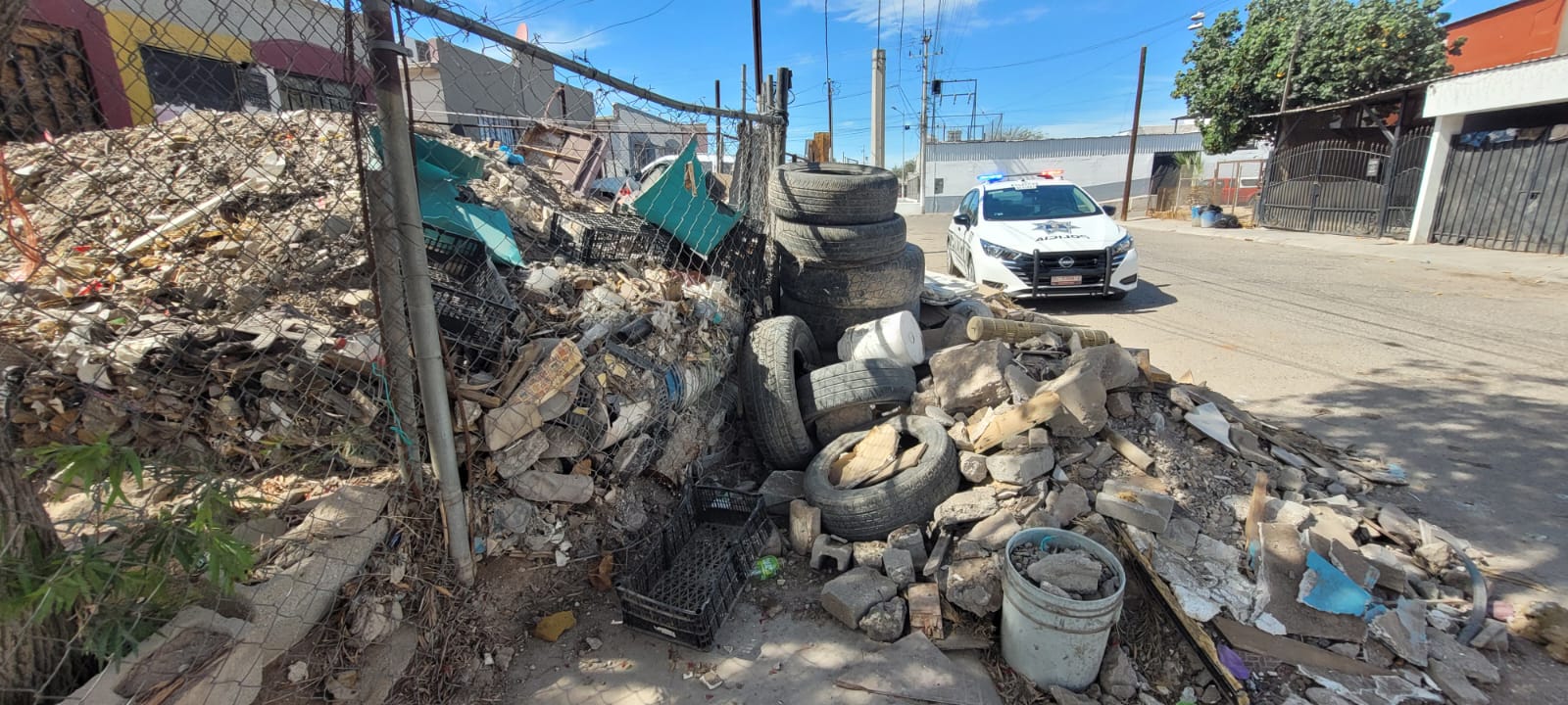 Mexicali, Baja California, a 02 de marzo de 2026. Derivado de una denuncia anónima en la que se señaló la existencia de un domicilio donde presuntamente se realizan cobros por recibir escombro y basura, agentes de la Unidad Ecológica de la Policía Municipal elaboraron una boleta de infracción por el acumulamiento de desechos en el fraccionamiento Misión San Ignacio, ubicado al poniente de Mexicali.