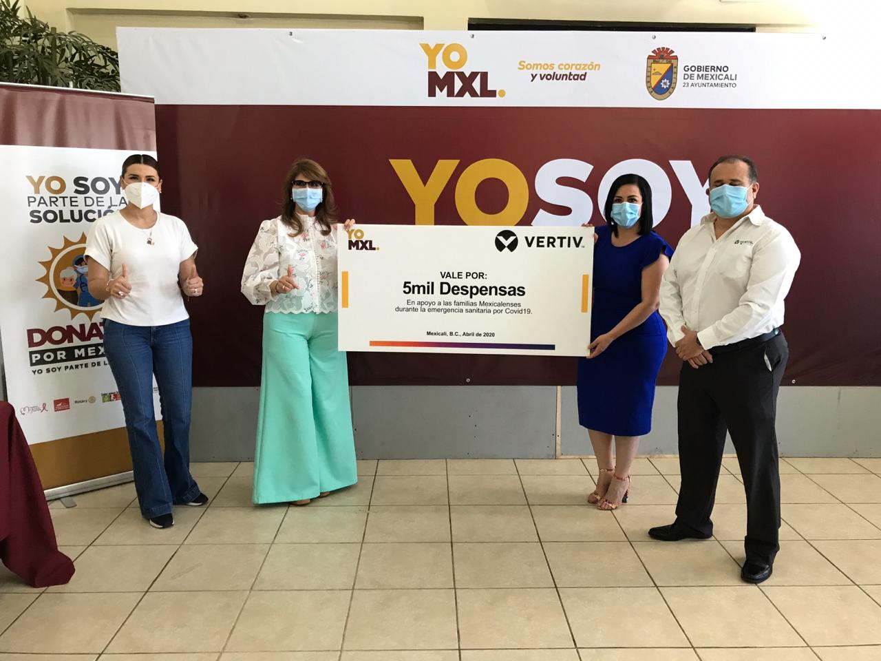 Atendiendo el llamado del Ayuntamiento de Mexicali para dar apoyo a las familias más vulnerables por la pandemia de COVID-19, la empresa VERTIV realizó el donativo de 5 mil despensas de alimentos a través de DIF Mexicali.