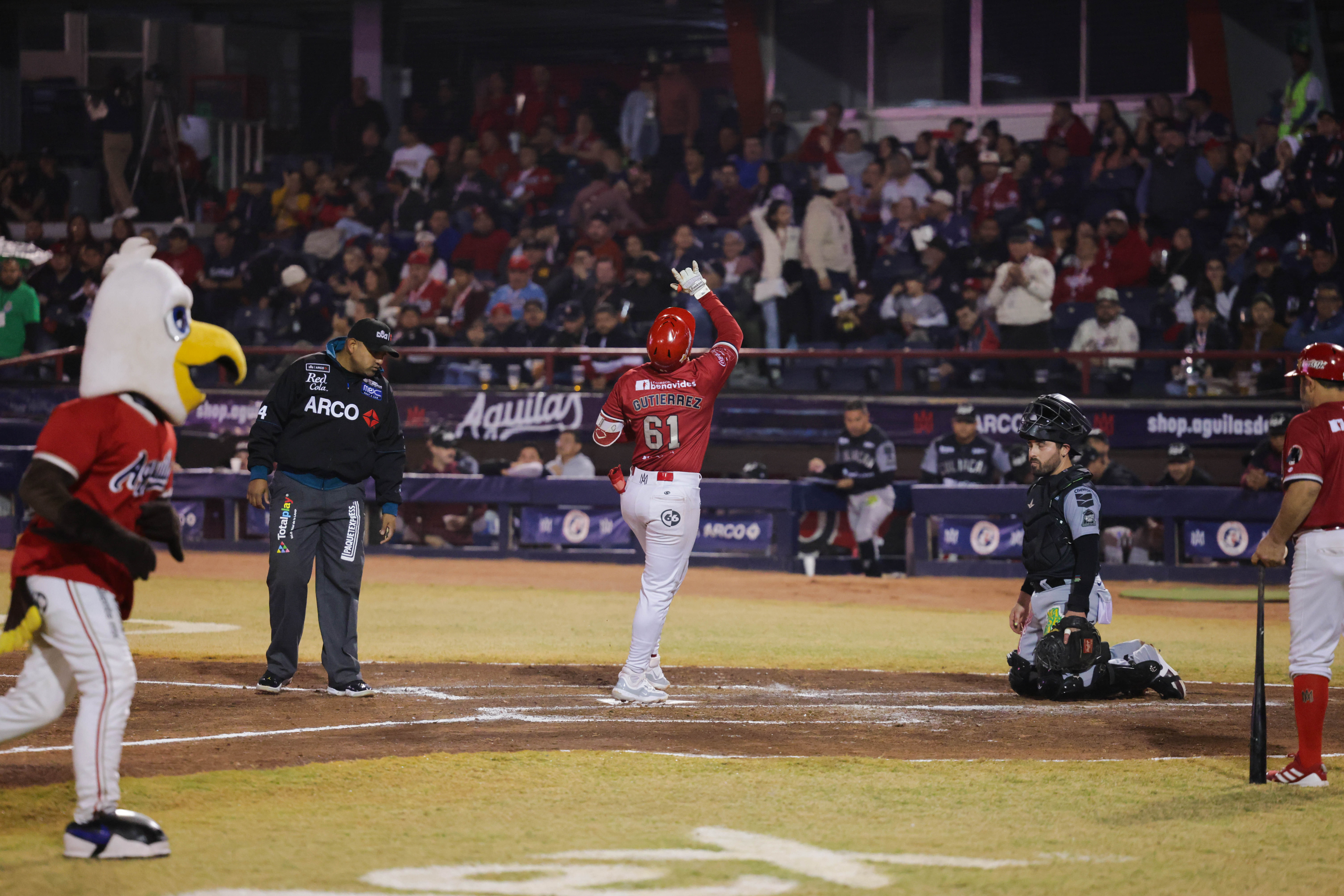 La visita inició ganando el encuentro con batazo de Joey Meneses, que provocó el pecado del tercera base Emplumado Moisés Gutiérrez; Luis Verdugo aprovechó para marcar el 1-0 parcial.