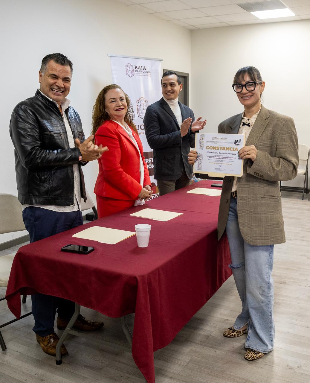 MEXICALI. La Secretaría de Educación de Baja California en coordinación con el Consejo Nacional de Fomento Educativo en Baja California, entregó de constancias del curso docentes de educación básica del municipio de Mexicali que participaron en el curso denominado ““La transformación de la práctica docente a través de la propuesta pedagógica de la relación tutora”.