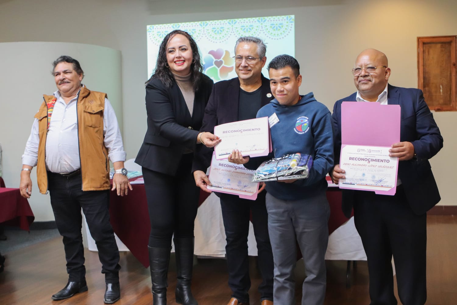 En este evento se premió con un kit profesional de pintura a Mateo Valenzuela Ramírez, alumno del CAM con su obra “Dos héroes, un mensaje: cuidemos nuestro mundo”, ganador del primer lugar en la categoría 1; en la Categoría 2 el primer lugar lo obtuvo la alumna Fernanda Amayrani Contreras Hernández de la Escuela Secundaria Gral. No 7 Emiliano Zapata T.M. USAER XLIII con su dibujo titulado “Inclusión”.