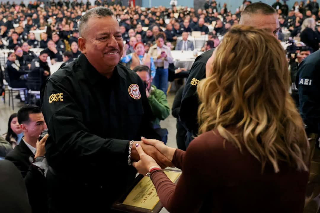 ROSARITO. Durante el evento conmemorativo del Día Internacional de La y El Policía, encabezado por la Gobernadora Marina del Pilar Avila Olmeda, en el que se rindió merecido reconocimiento a mujeres y hombres cuyo compromiso diario es la procuración del bienestar y seguridad de la ciudadanía, elementos de la Fuerza Estatal de Seguridad y Custodia Penitenciaria fueron galardonados por su desempeño al interior del Sistema Penitenciario de Baja California.