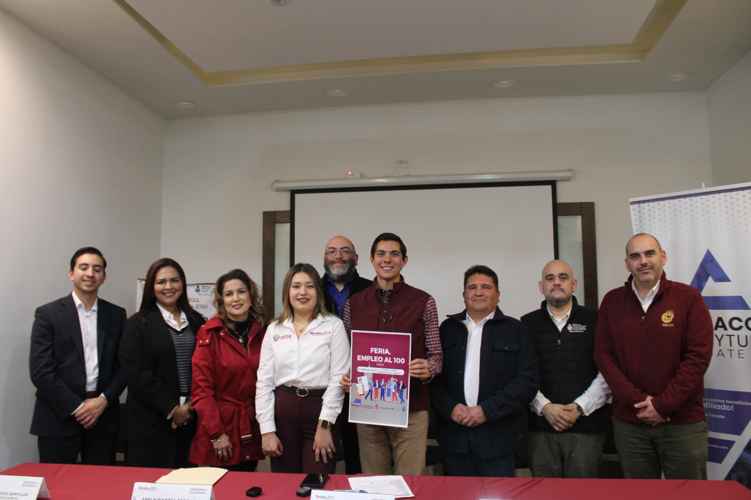 Tecate, Baja California, a 31 de enere de 2025.- El Gobierno Municipal de Tecate, a través de la Dirección de Desarrollo Económico, llevó a cabo una rueda de prensa en las instalaciones de CANACO, donde el alcalde Román Cota Muñoz anunció los pormenores de la Feria del Empleo al 100.