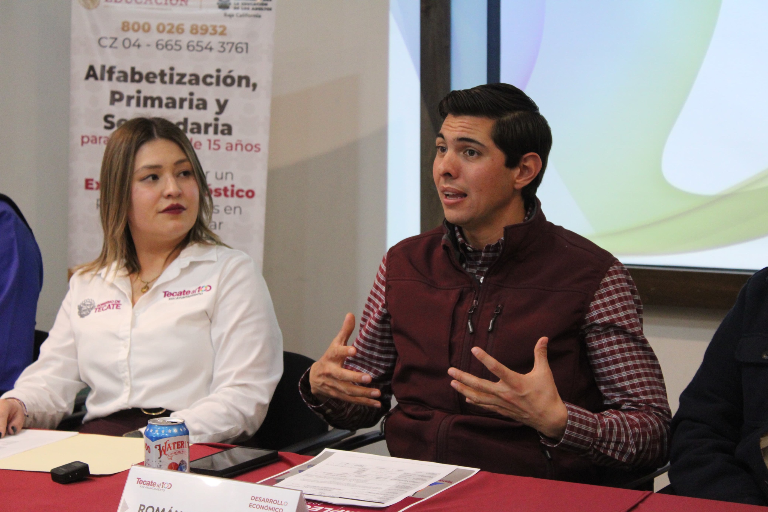Tecate, Baja California, a 31 de enere de 2025.- El Gobierno Municipal de Tecate, a través de la Dirección de Desarrollo Económico, llevó a cabo una rueda de prensa en las instalaciones de CANACO, donde el alcalde Román Cota Muñoz anunció los pormenores de la Feria del Empleo al 100.