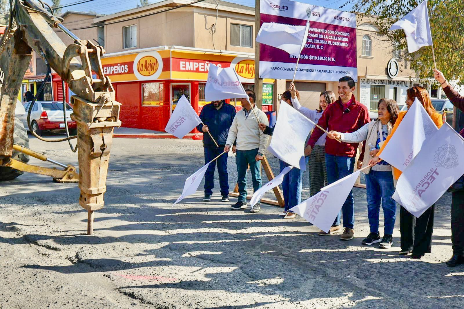 Tecate, Baja California a 04 de diciembre de 2024.- Trabajando para mejorar la movilidad en las calles del municipio, el Alcalde de Tecate Román Cota Muñoz, dio arranque esta tarde a los trabajos de rehabilitación de pavimento de la calle Misión de Todos los Santos, en la colonia El Descanso, compromiso con la comunidad.
