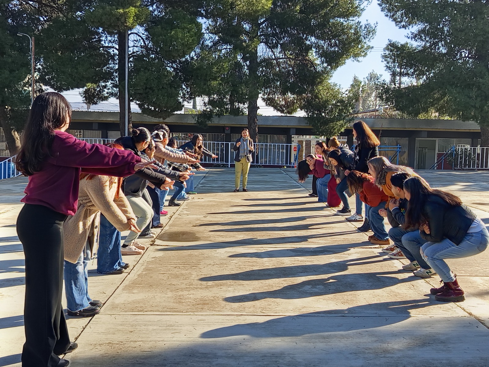 La psicóloga ponente, Maribel Martínez Martínez, invitó a las y los asistentes a participar en una dinámica grupal al aire libre, marcando así el inicio de una jornada de trabajo colaborativo.