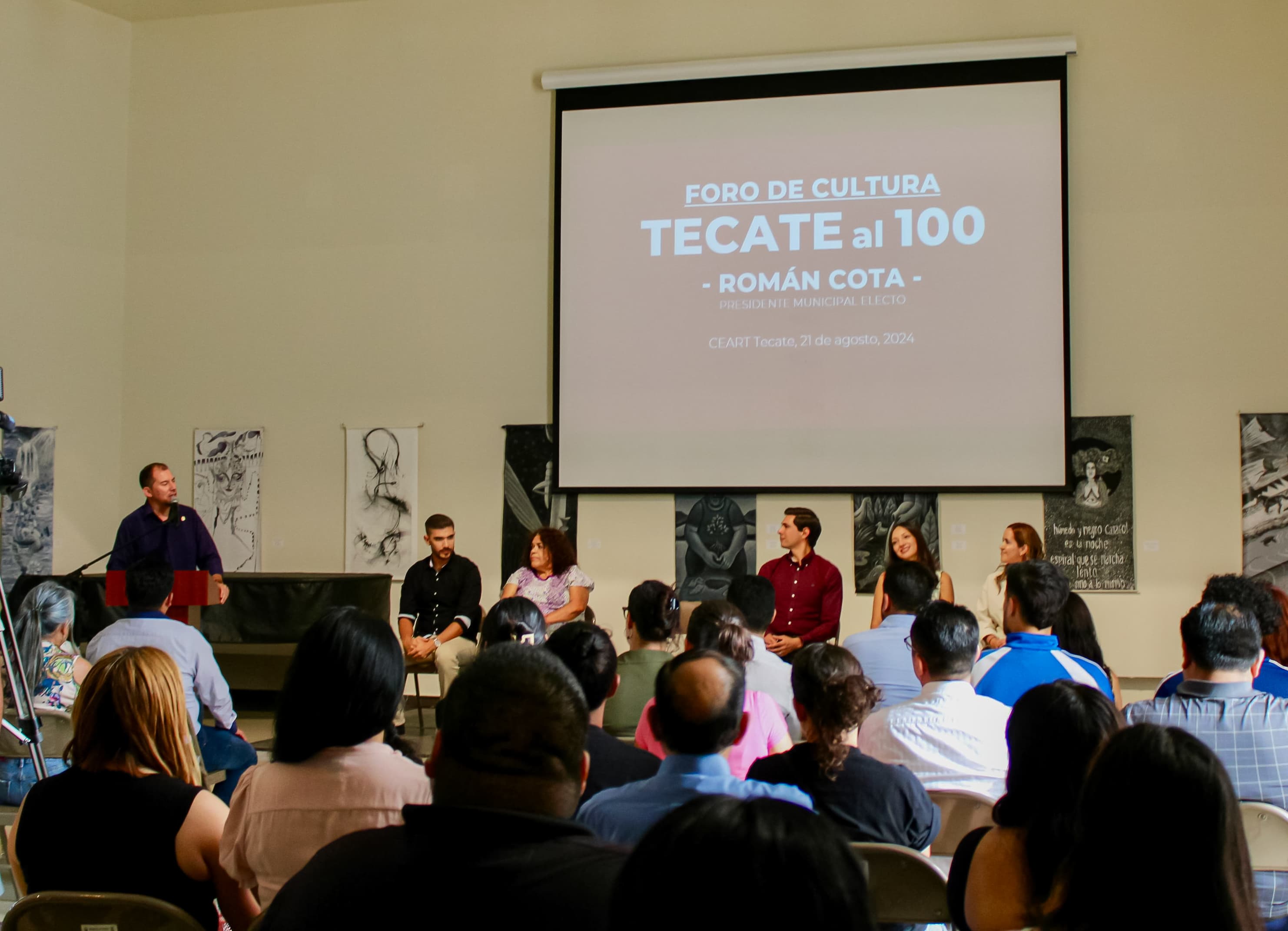 Tecate, a 21 de agosto de 2024.- Con el objetivo de sentar las bases para la creación de la política pública cultural para el XXV Ayuntamiento de Tecate, el Presidente Municipal Electo, Román Cota Muñoz realizó el foro cultural ¡Tecate al 100!