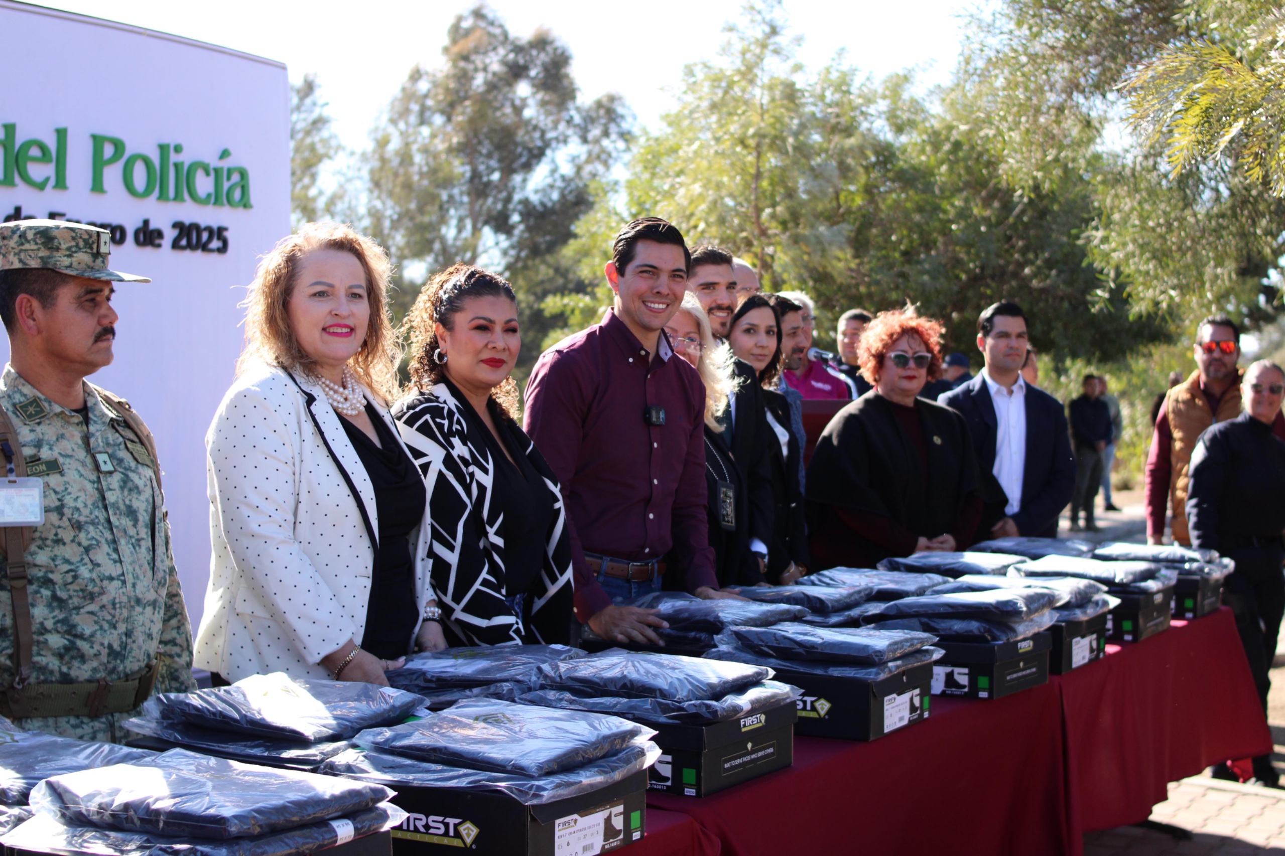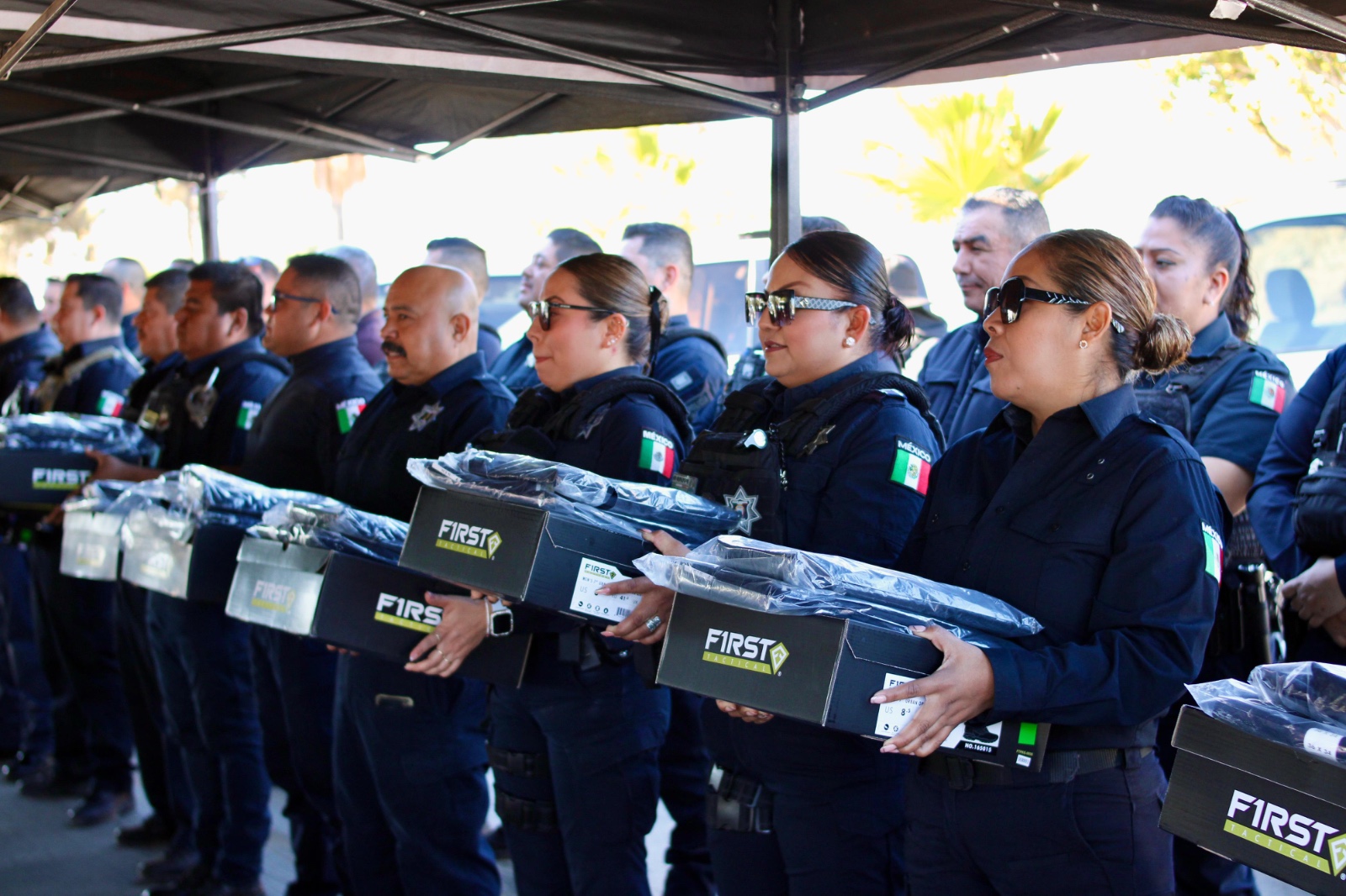• El alcalde reconoció la labor de la corporación y refrendó el compromiso realizado en días pasados con la Gobernadora del Estado y los alcaldes de los municipios de Baja California para la mejora salarial y la seguridad social de los elementos de la policía municipal.