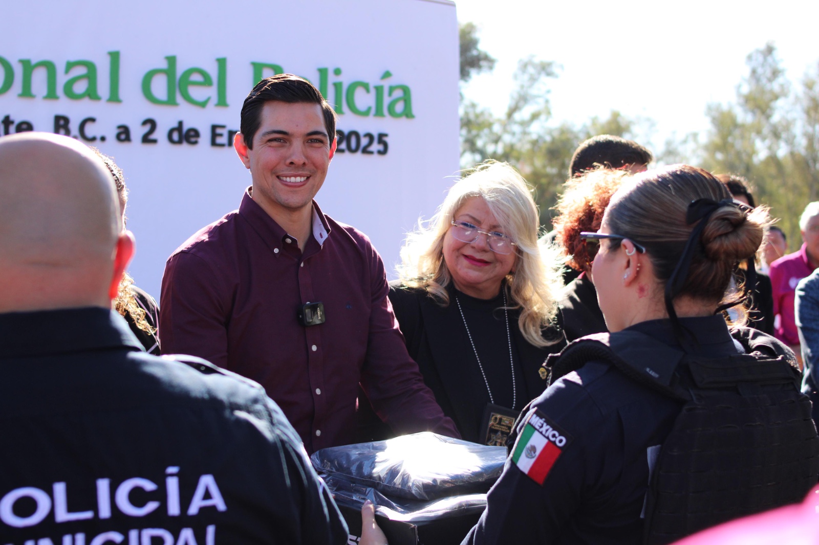 • El alcalde reconoció la labor de la corporación y refrendó el compromiso realizado en días pasados con la Gobernadora del Estado y los alcaldes de los municipios de Baja California para la mejora salarial y la seguridad social de los elementos de la policía municipal.
