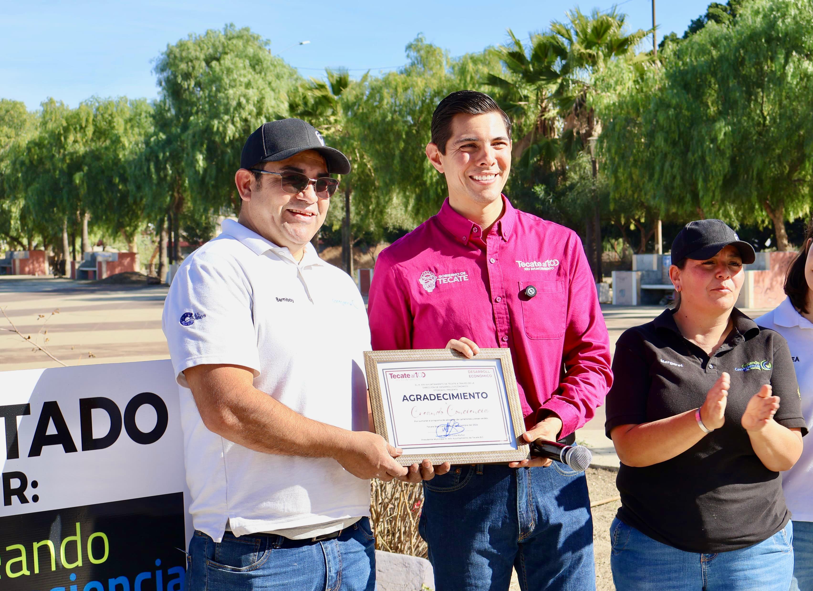 El alcalde Román Cota reconoció y agradeció a Bernando Rosales Alvarado, a su familia y a la escuela “Creando Conciencia” por la labor que realizan y su compromiso con la comunidad, reiterando la importancia de sumar esfuerzos entre gobierno, iniciativa privada, instituciones educativas y sociedad civil para lograr un Tecate más verde, limpio y sostenible.
