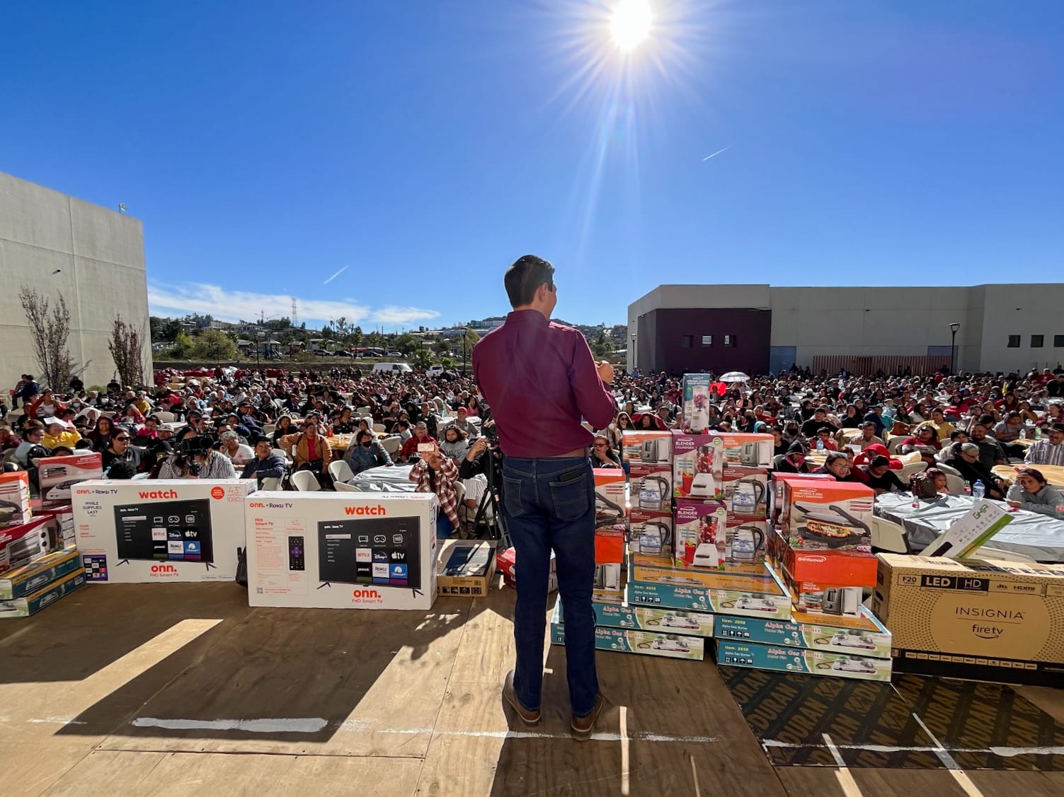En la celebración, a la que acudieron más de tres mil personas, se entregaron cenas navideñas, electrodomésticos y se realizaron actividades recreativas para niñas y niños.