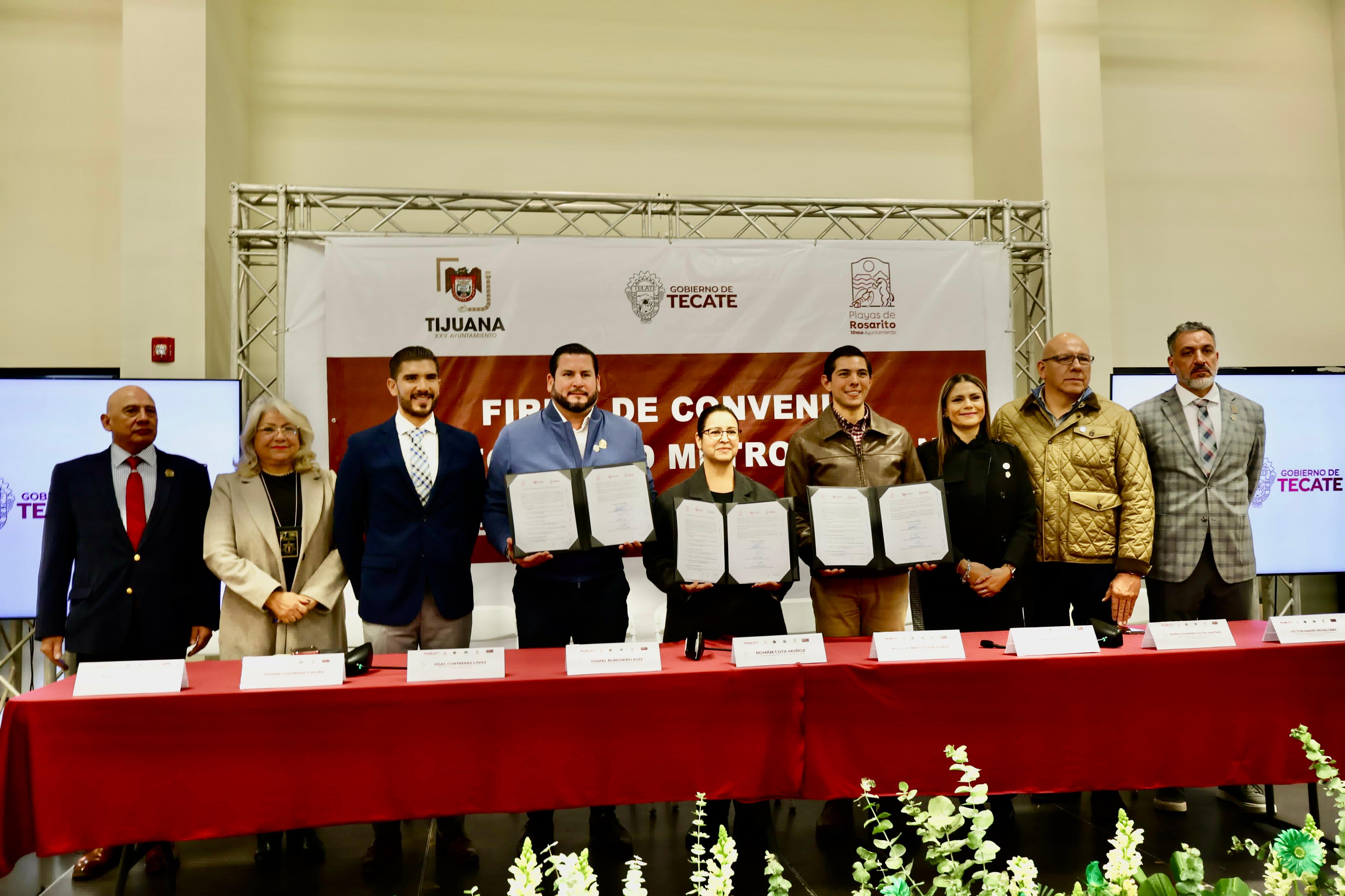 Tecate, Baja California a 24 de enero de 2025.- Con el objetivo de fortalecer la seguridad pública en la región, los municipios de Tecate, Tijuana y Playas de Rosarito oficializaron la firma del convenio de colaboración para la creación de la Policía Metropolitana de la Zona Costa. Este histórico evento tuvo como sede el municipio de Tecate, donde el alcalde Román Cota Muñoz fungió como anfitrión.