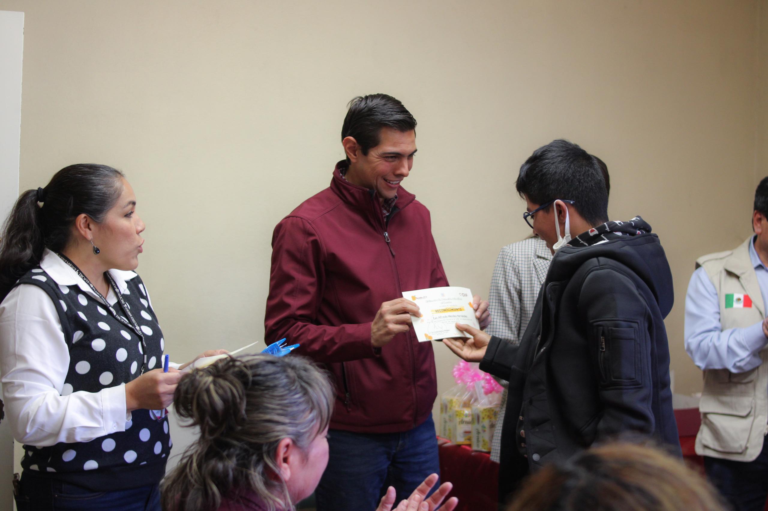 Cota Muñoz y Herrera Soto entregaron reconocimientos a las participantes de los tres talleres impartidos por personal especializado y compartieron un momento de convivencia con ellas, en el cual el alcalde refrendó el compromiso del XXV Ayuntamiento de Tecate de atender a las personas que más necesitan.