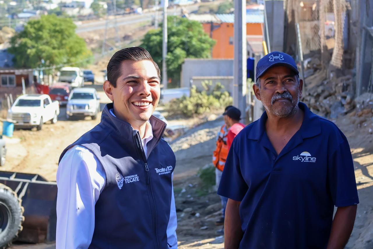 El alcalde Román Cota Muñoz, acompañado del arquitecto Alfredo Hernández, director de INPRODEUR, acudió al sitio para supervisar los avances y dialogar con los residentes, entre ellos el vecino Antonio Muñoz, quien reconoció la respuesta oportuna del Gobierno Municipal ante las solicitudes ciudadanas.