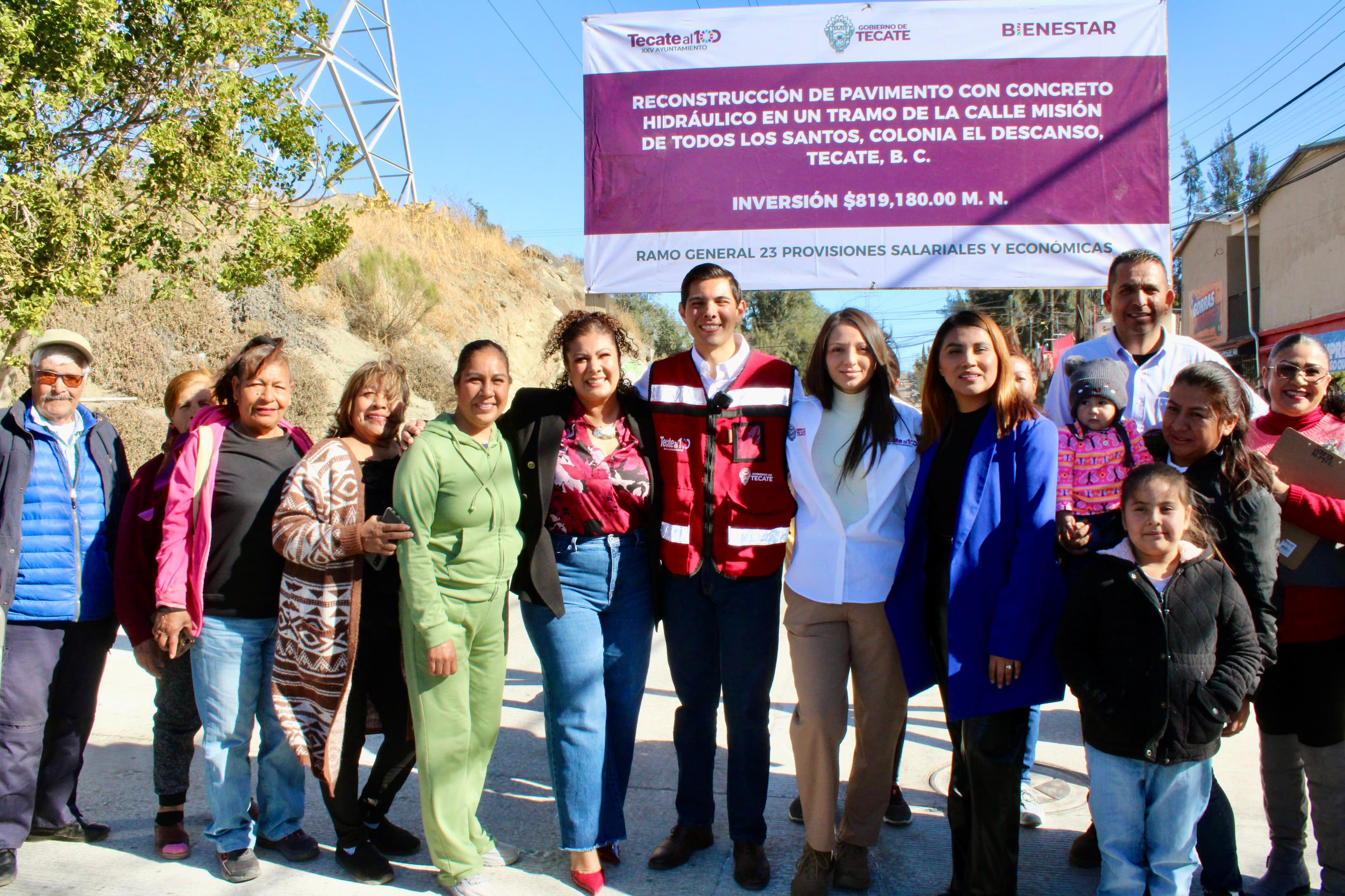Tecate, Baja California, a 18 de diciembre de 2024 – El presidente municipal de Tecate, Román Cota Muñoz, encabezó la inauguración de la obra de reconstrucción de pavimento con concreto hidráulico en un tramo de la calle Misión de Todos los Santos, ubicada entre la calle Misión de Loreto y la calle Misión de San Diego, en la colonia El Descanso.