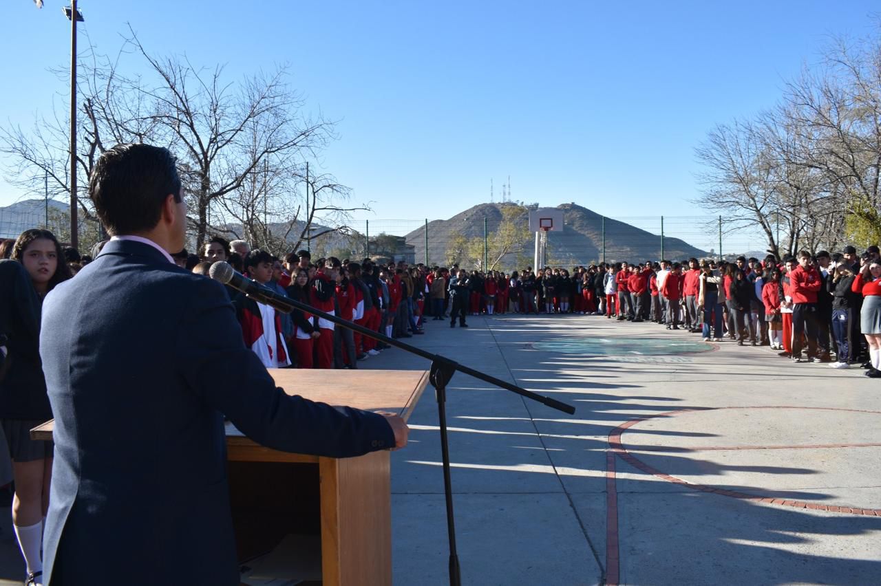 TECATE A 04 DE FEBRERO DEL 2025.- El diputado Humberto Valle acudió al martes cívico en el CETis25 en la institución académica agradeció al personal docente y administrativa por la honorable invitación.