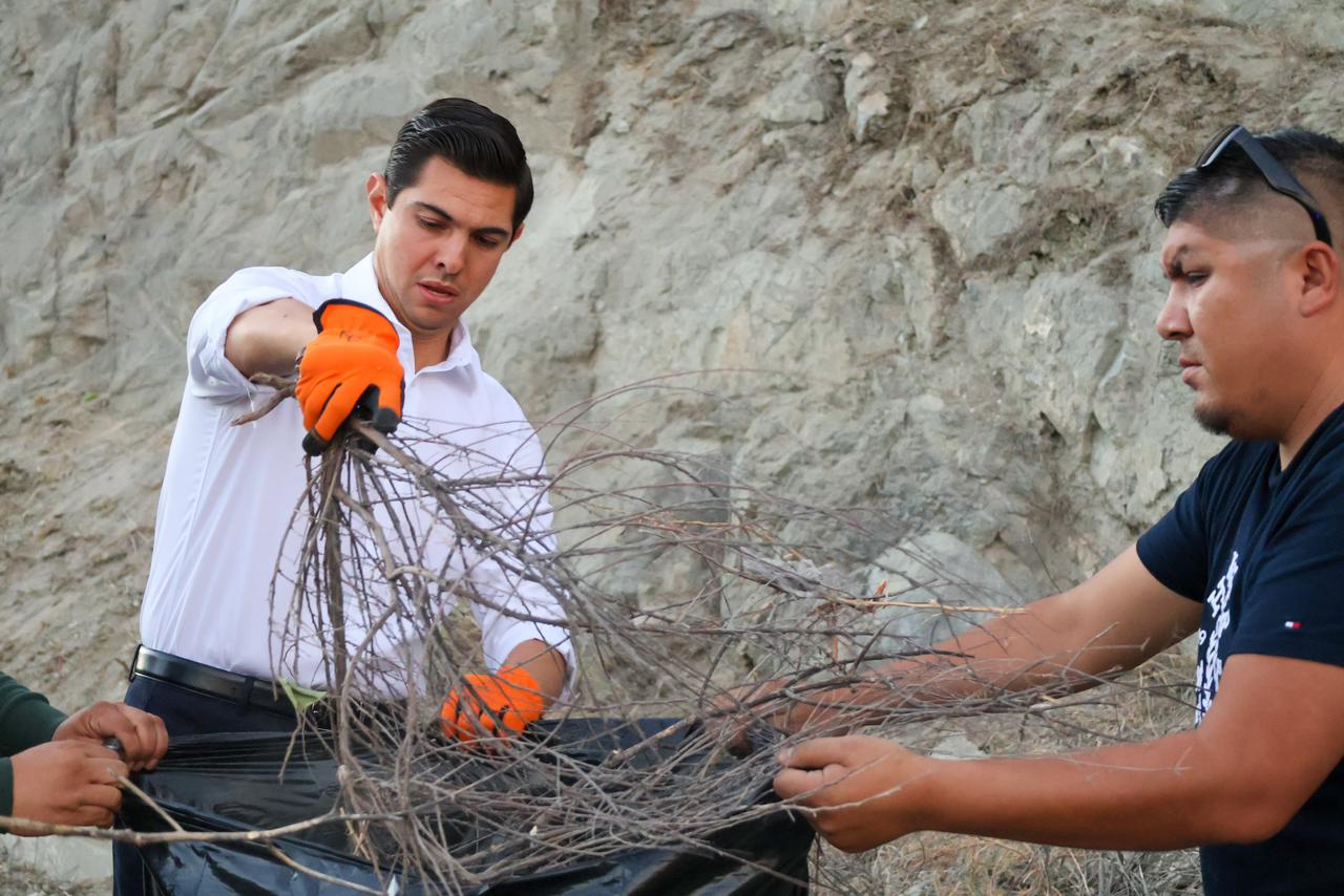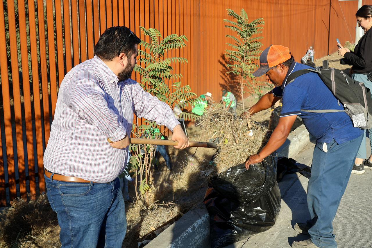 Durante la jornada, el alcalde, acompañado de personal de todas las dependencias municipales, realizó labores de limpieza, recolección de basura y mantenimiento general en los alrededores, reafirmando el compromiso de la administración con un Tecate limpio, ordenado y digno para quienes habitan y visitan el municipio.