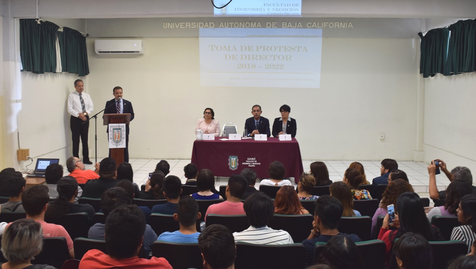 Durante la ceremonia de la toma de protesta, el Rector de la UABC doctor Juan Manuel Ocegueda Hernández, aprovechó la ocasión para felicitar a esta unidad académica por cumplir íntegramente con su labor. “Quiero reconocer el esfuerzo colectivo, porque finalmente los logros universitarios son el resultado del trabajo comprometido de toda la comunidad".