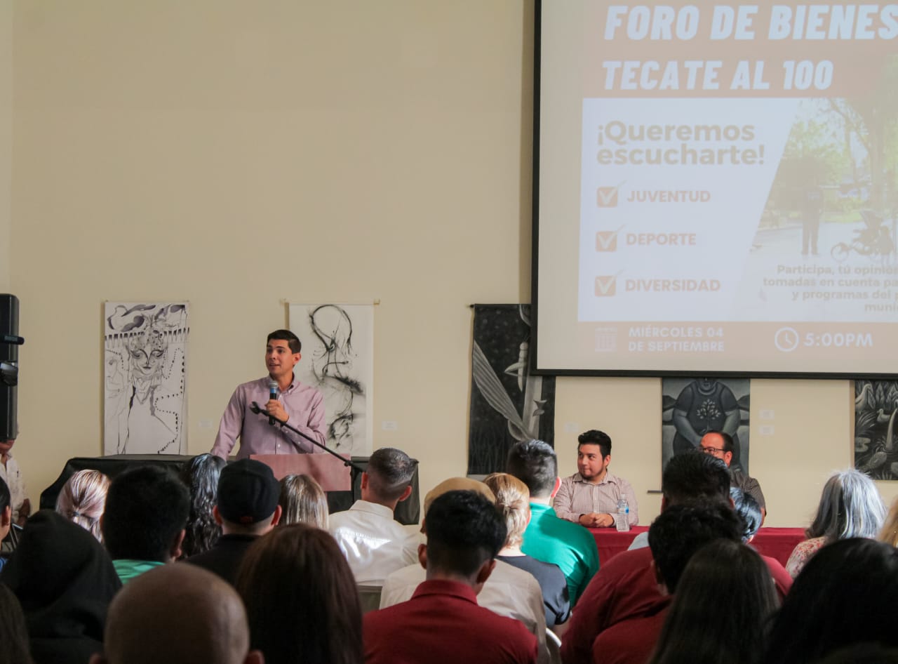 Tecate, a 5 de septiembre de 2024.- Con la participación de la comunidad, especialistas y activistas se desarrolló el foro bienestar ¡Tecate al 100! para el diseño y construcción de los programas que implementará el XXV Ayuntamiento en materia de juventud, deporte y diversidad.