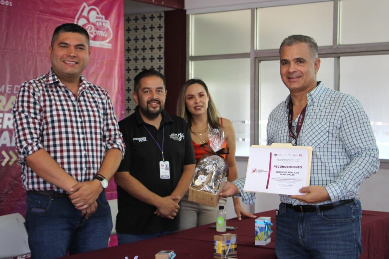 El titular del IMDET, acompañado del subdirector técnico de la paramunicipal, Jorge Ángel Ramírez Aguilar, y por la jefa de Comercialización, Isabela Vega González, entregó reconocimientos a Obras Públicas Municipales, así como a las delegaciones, como fue el caso de Playas de Tijuana.
