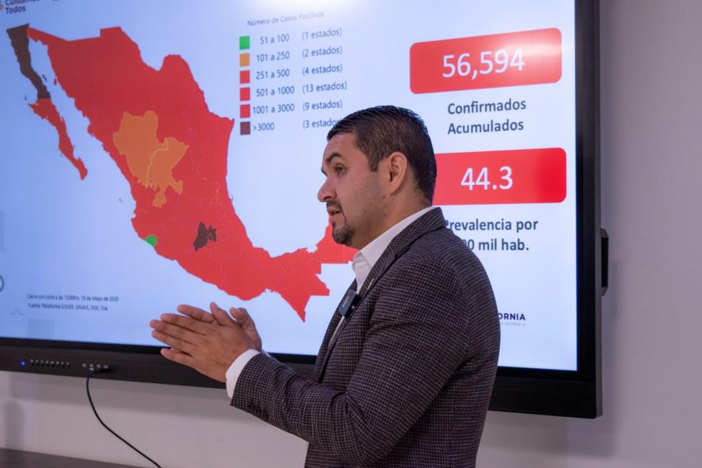 Presentó detallado el reporte al corte del pasado 20 de mayo, en el que consta que se han estudiado 6 mil 710 casos de COVID-19 en Baja California, de los cuales 3 mil 717 dieron positivo. En Tijuana hay mil 719 pacientes; mil 613 en la ciudad de Mexicali; Ensenada 173; Playas de Rosarito con 49; Tecate 140; San Quintín/ Vicente Guerrero 20 y San Felipe con 3.