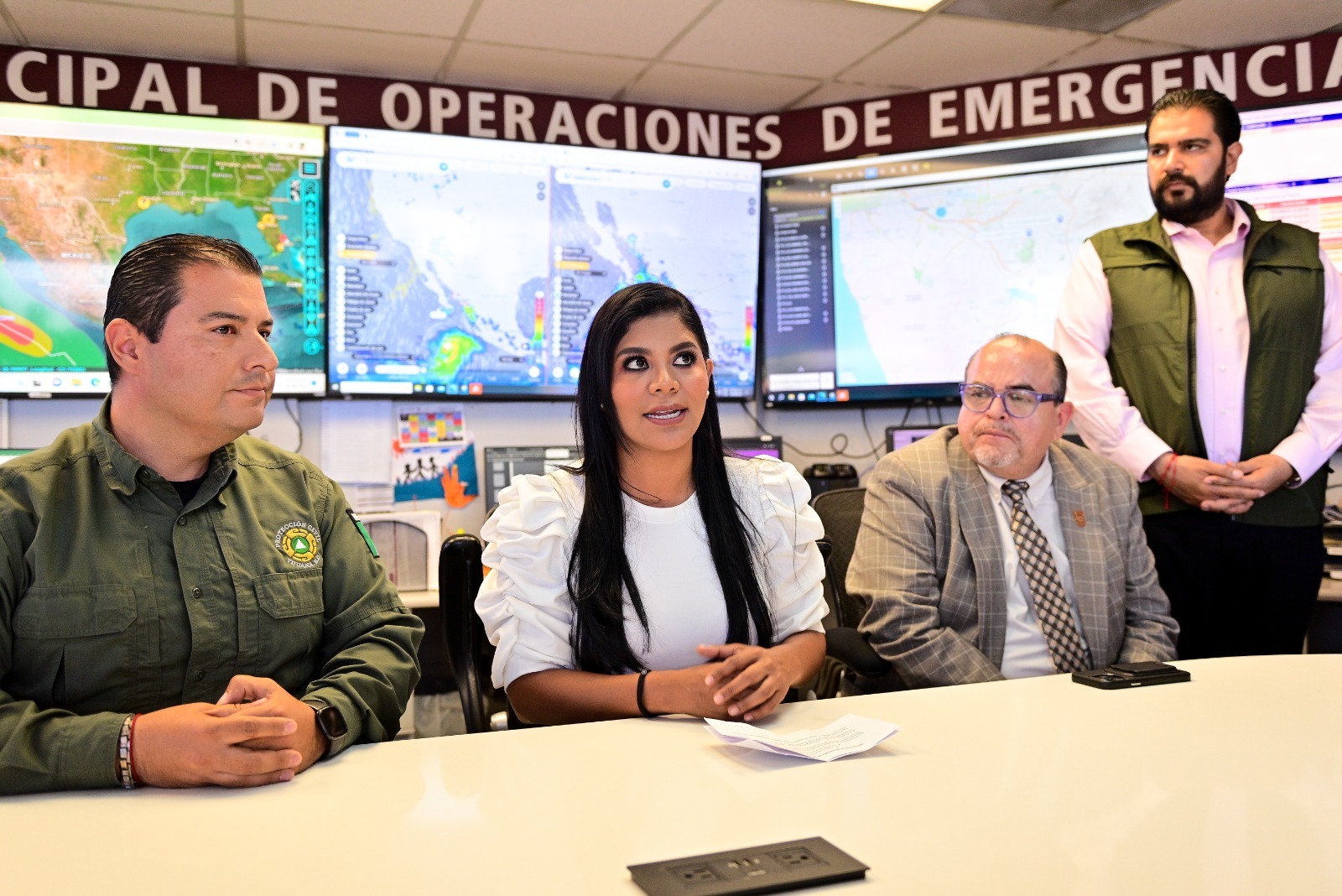 Este viernes y tras la declaratoria de prealerta aprobada por el Consejo Municipal de Protección Civil, la titular del XXIV Ayuntamiento acudió a las instalaciones del Centro Municipal de Operaciones de Emergencias para dar a conocer información actualizada sobre el pronóstico, así como las medidas tomadas para inhibir incidentes.