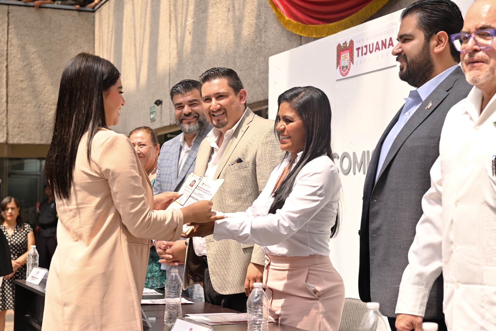 Tijuana, Baja California, 04 de septiembre de 2023.- “No es fácil, es una gran responsabilidad el trabajo que todas y todos ustedes tendrán al frente de este cargo que estoy segura desempeñarán con honor, con valor, con entrega y con compromiso a nuestra ciudad”, expresó la alcaldesa Montserrat Caballero ante los 70 ciudadanos a quienes tomó protesta como Comisarios Sociales Honorarios del XXIV Ayuntamiento de Tijuana.