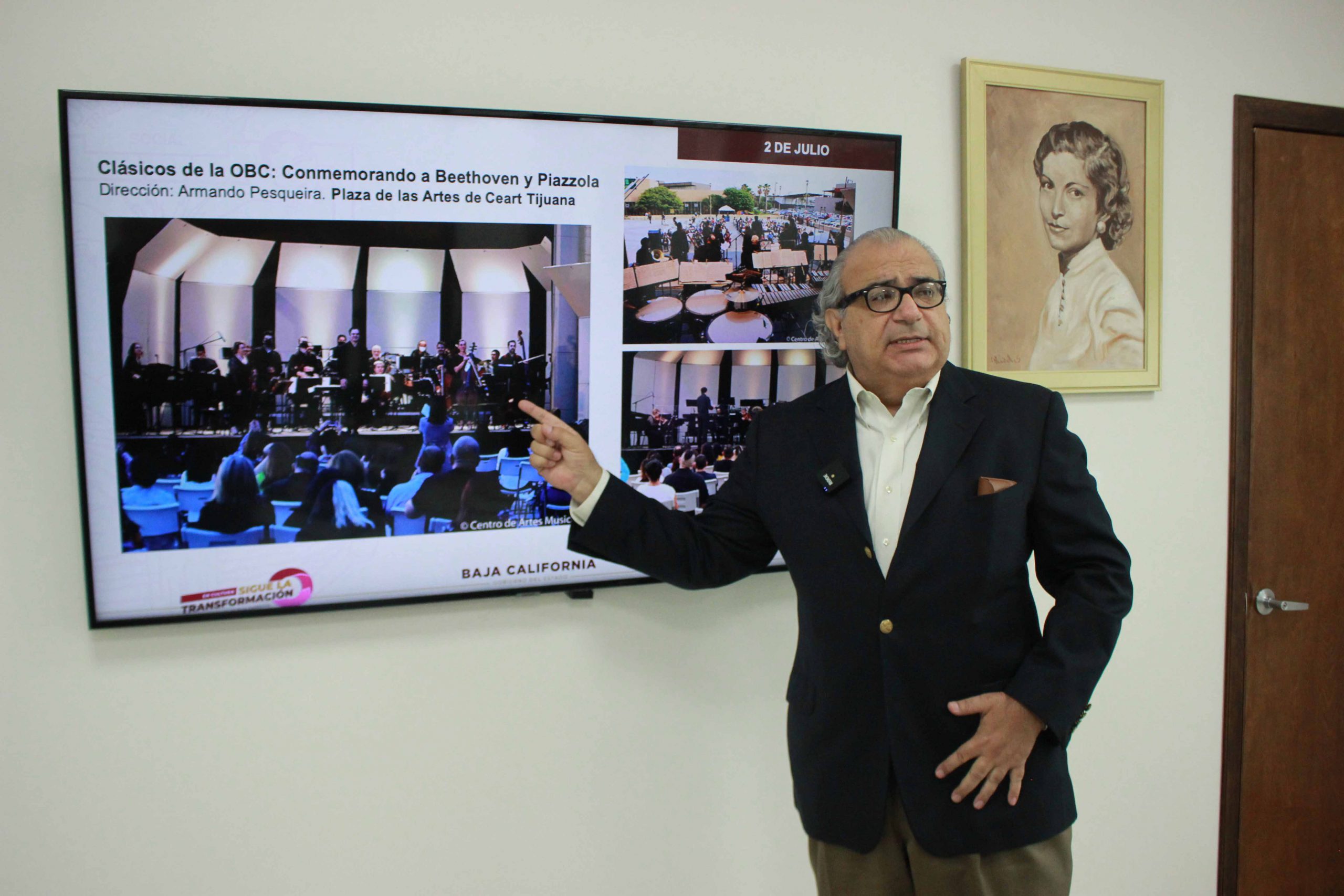 El 2 de julio en la Plaza de las Artes del CEART Tijuana, regresó la Orquesta de Baja California para ofrecer un concierto en conmemoración a Beethoven y Piazzola, bajo la dirección de Armando Pesqueira, con apoyo del CAM.