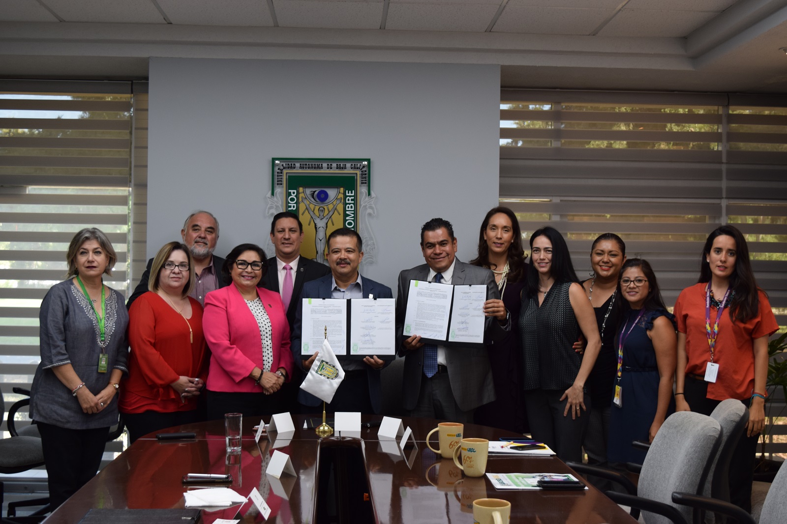 Como testigos firmaron por parte de la UABC la doctora María Eugenia Pérez Morales, Vicerrectora del Campus Tijuana; maestra Elvira Aurora Rodríguez Velarde, Coordinadora General de Formación Profesional y Vinculación Universitaria; doctor Eduardo Serena Gómez, Director de la Escuela de Ciencias de la Salud, Unidad Valle de las Palmas; ingeniero Jorge Luis Robles Contreras, Jefe Del Departamento de Formación Profesional y Vinculación Universitaria del Campus Tijuana.