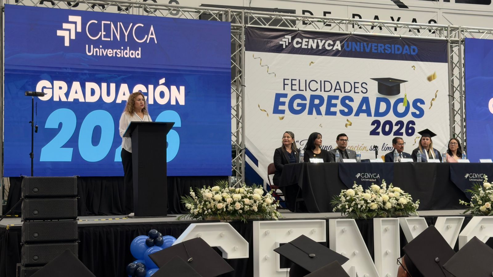 Dirigiéndose a las y los egresados, expresó que la culminación de sus estudios representa la oportunidad de aportar valor a la sociedad, y reiteró que CENYCA será siempre su casa de estudios, brindándoles herramientas para desarrollar su creatividad y espíritu emprendedor.