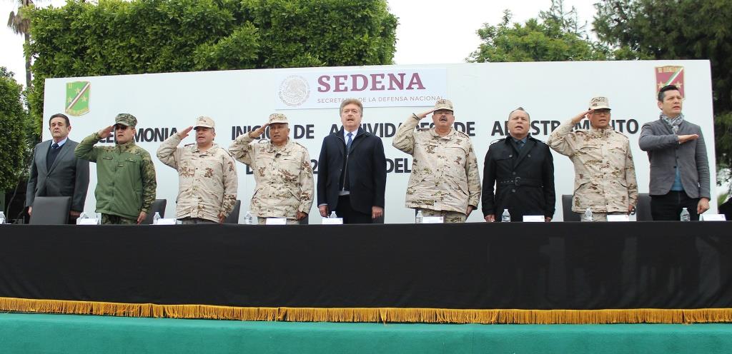 El Gobernador del Estado, Francisco Vega de Lamadrid, junto al Comandante de la Segunda Región Militar, Gabriel García Rincón, participó este sábado en la Ceremonia de Inicio de Actividades de Adiestramiento, de 108 jóvenes que comienzan su Servicio Militar Nacional y que integran el primer escalón 2019.