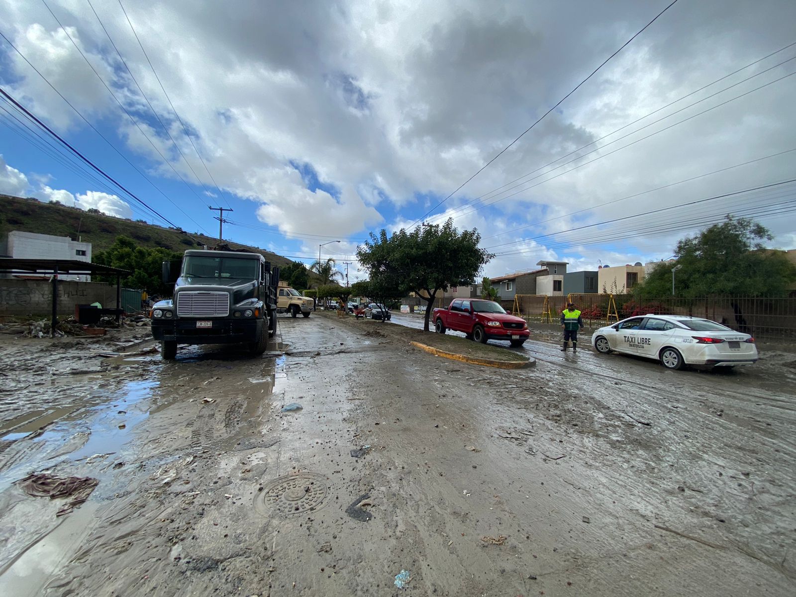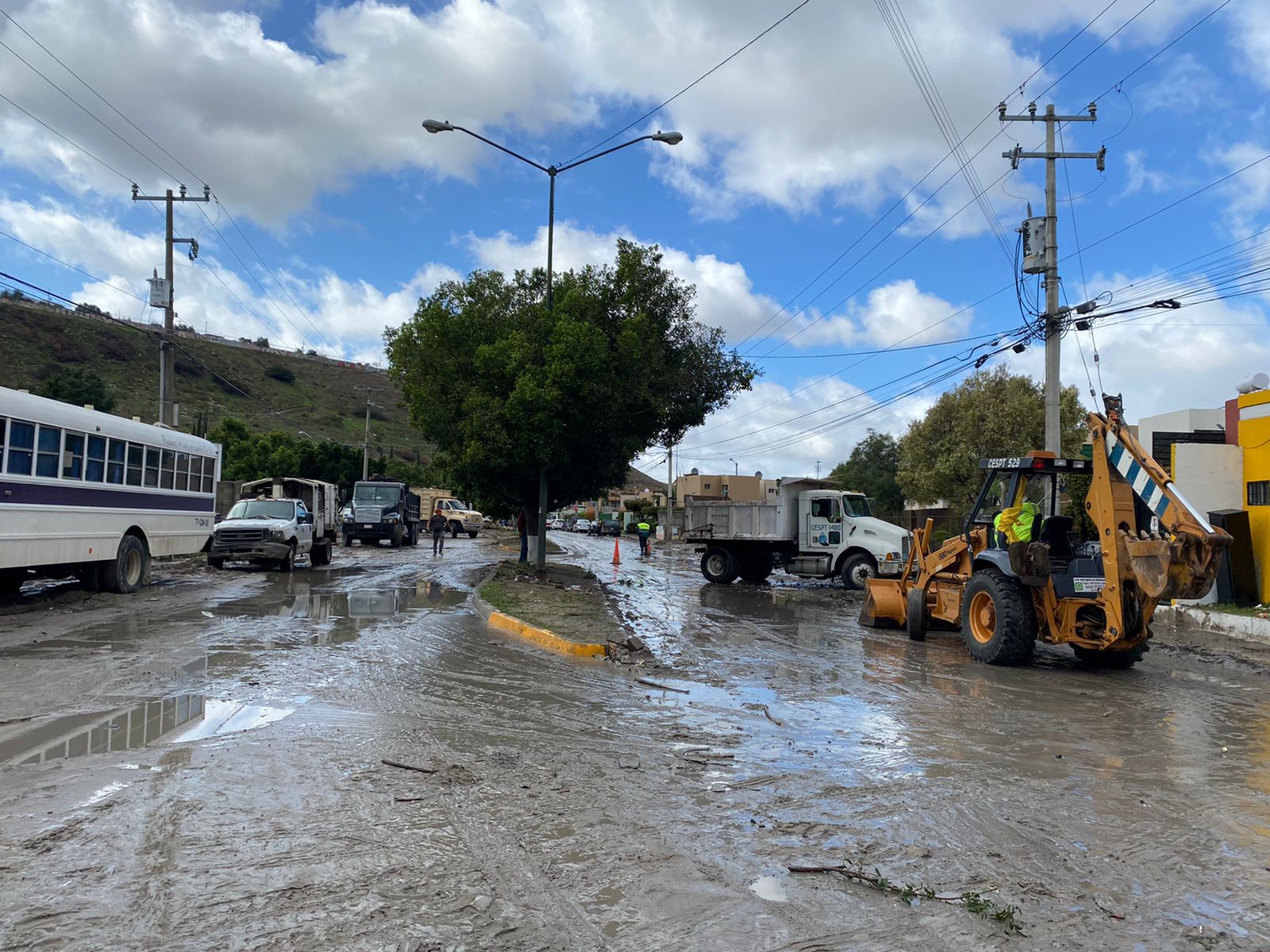 Cabe señalar que dicho fraccionamiento no ha sido entregado al Ayuntamiento de Tijuana, sin embargo, la primera edil instruyó apoyar a la ciudadanía afectada, con el desazolve y limpieza, con el objetivo de habilitar el tránsito en la zona.