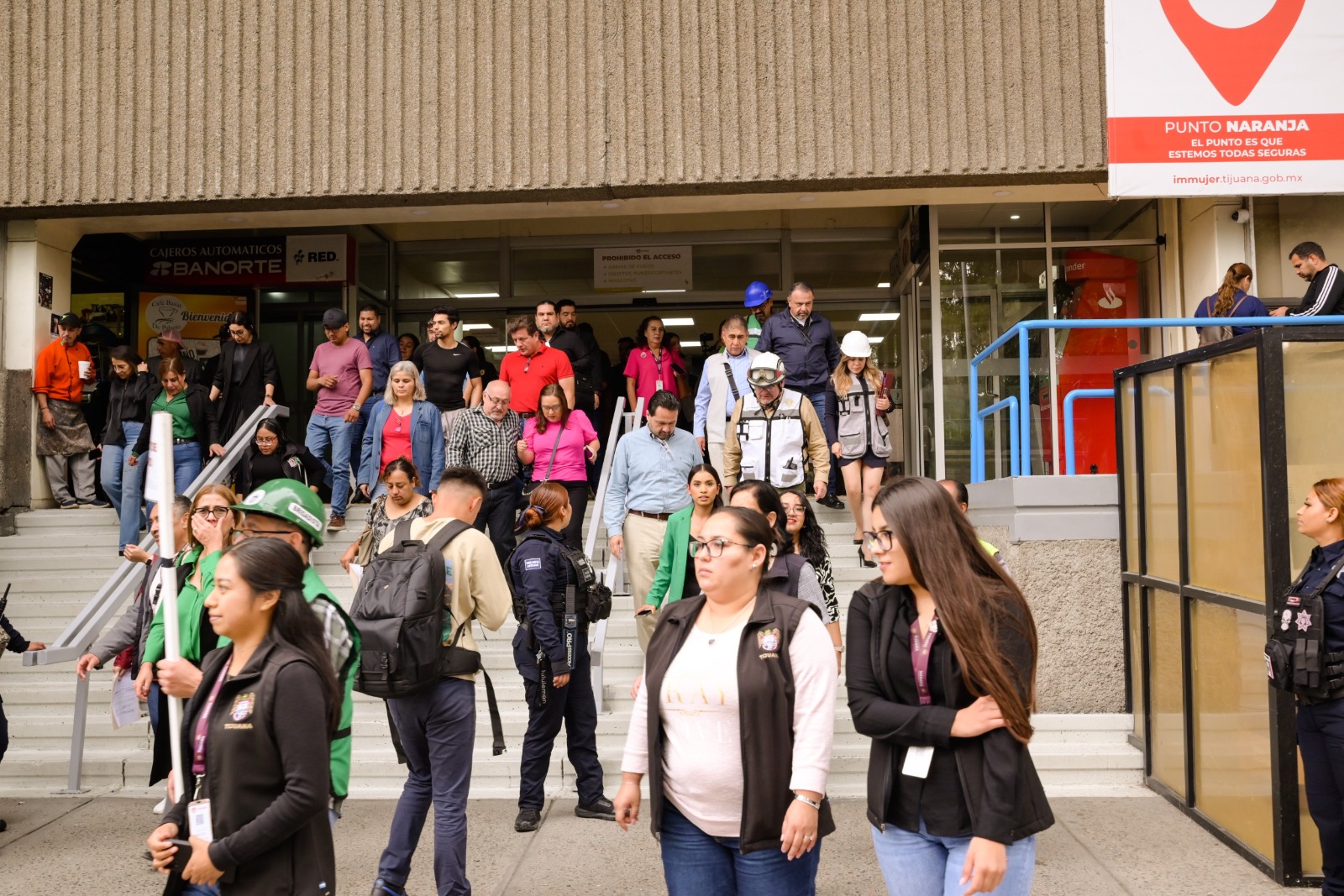 Tijuana, Baja California, 19 de septiembre de 2024.- El XXIV Ayuntamiento de Tijuana registró un tiempo récord de evacuación de tres minutos con 39 segundos durante el Simulacro Nacional de Sismo 2024, realizado este jueves 19 de septiembre, en Palacio Municipal.