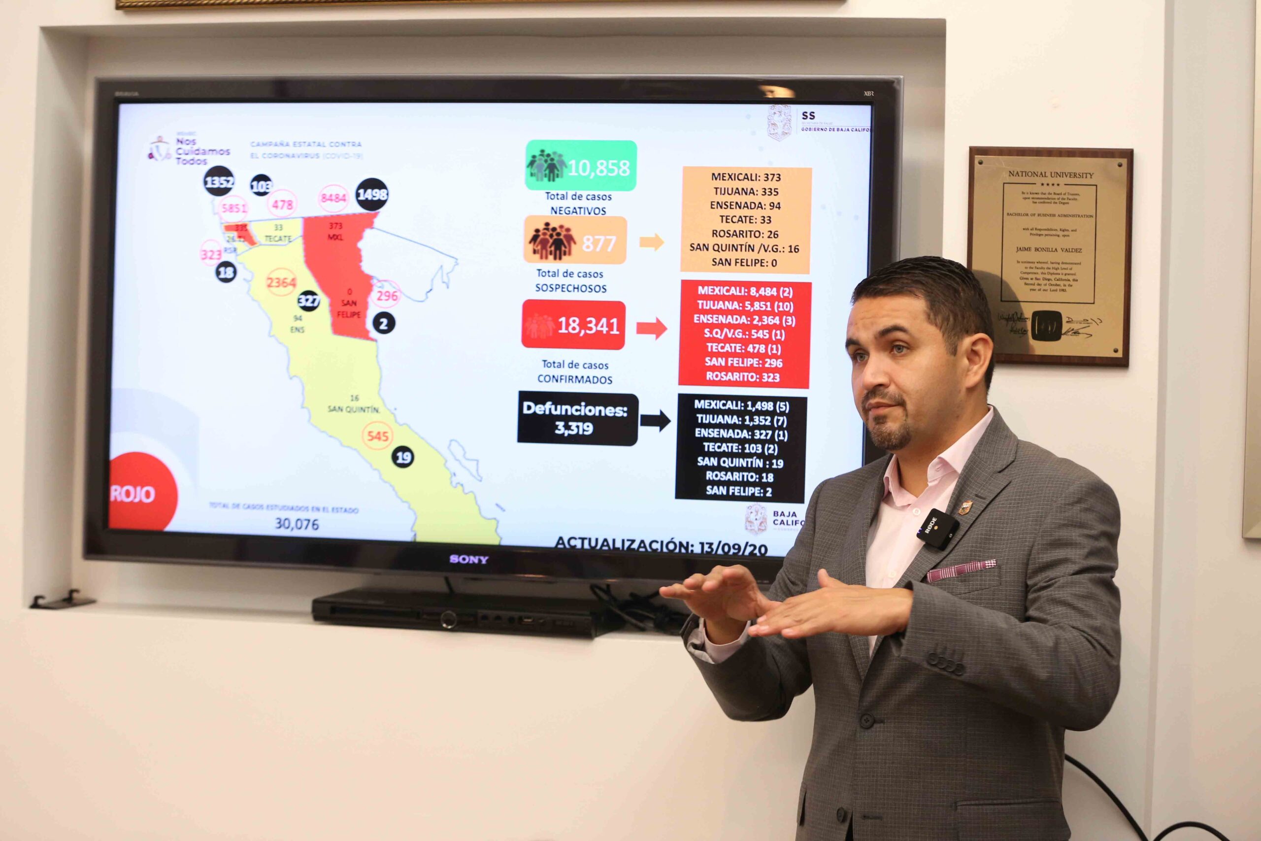 Así lo expuso el Secretario de Salud de Baja California, Alonso Oscar Pérez Rico, al tiempo de reconocer la estrategia que se ha emprendido en Baja California, con el liderazgo del gobernador Jaime Bonilla Valdez, para hacerle frente al patógeno, que ha derivado en que el Estado siga a la “baja”, con disminución en su número de casos por COVID-19, en relación a otras entidades del país.