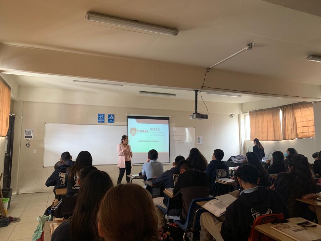 Tijuana, Baja California, 16 de octubre del 2022.- Personal del Instituto Municipal Contra las Adicciones (IMCAD), visitó las instalaciones del Cobach plantel Tijuana, para brindar pláticas preventivas a los estudiantes, con el tema “Hablemos de Adicciones”, beneficiando a más de 300 alumnos de primero y tercer semestre.