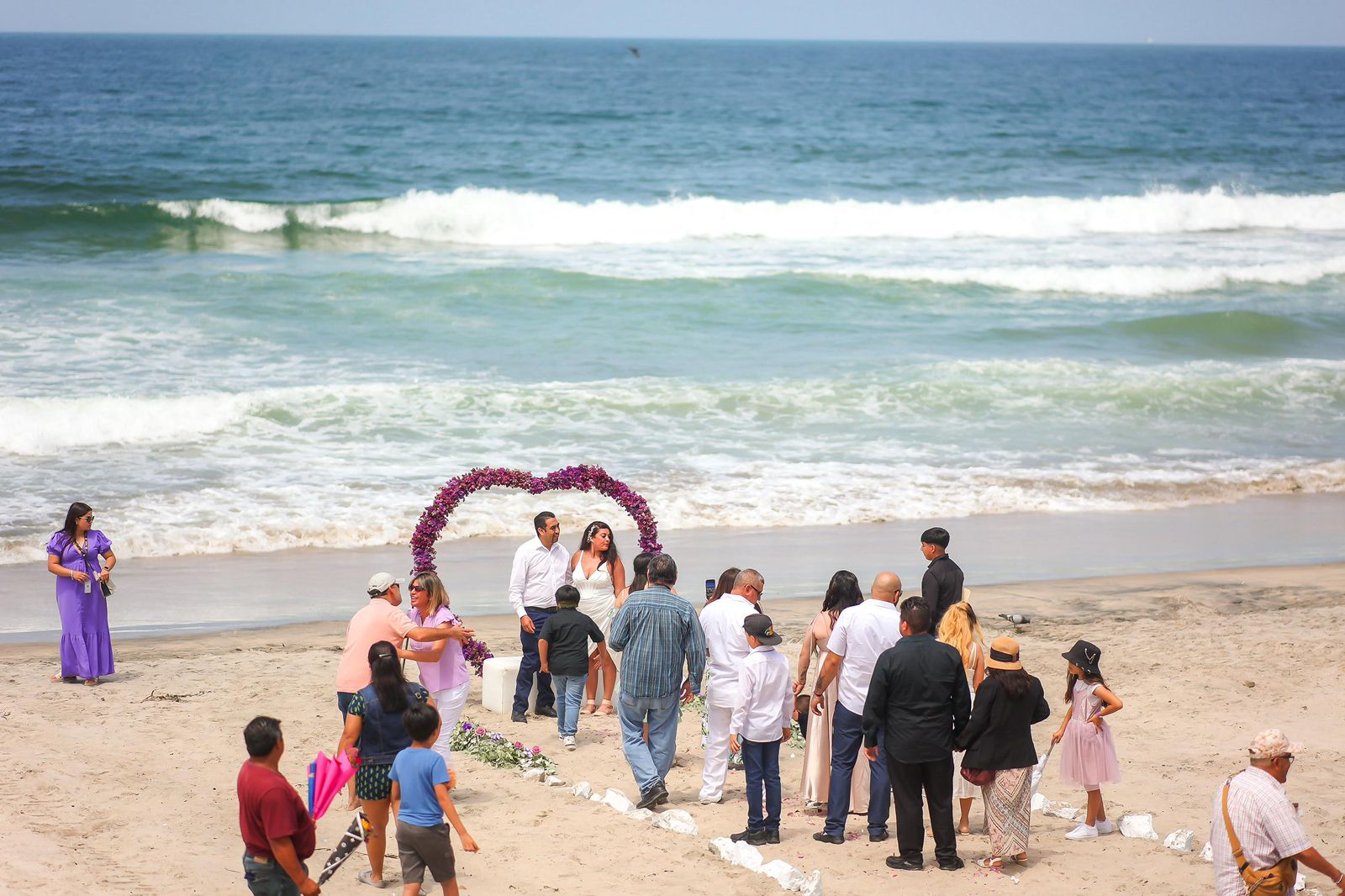 “Unirse en matrimonio es una de las decisiones más importantes en la vida; tienen derecho a ser felices con quienes ustedes elijan, pero a fin de que lo logren, deben estar conscientes que deberán tratarse con amor, respeto, confianza, fidelidad y lealtad”, les recordó a los novios, quienes se reunieron frente al mar de Playas de Tijuana, junto a sus seres queridos.