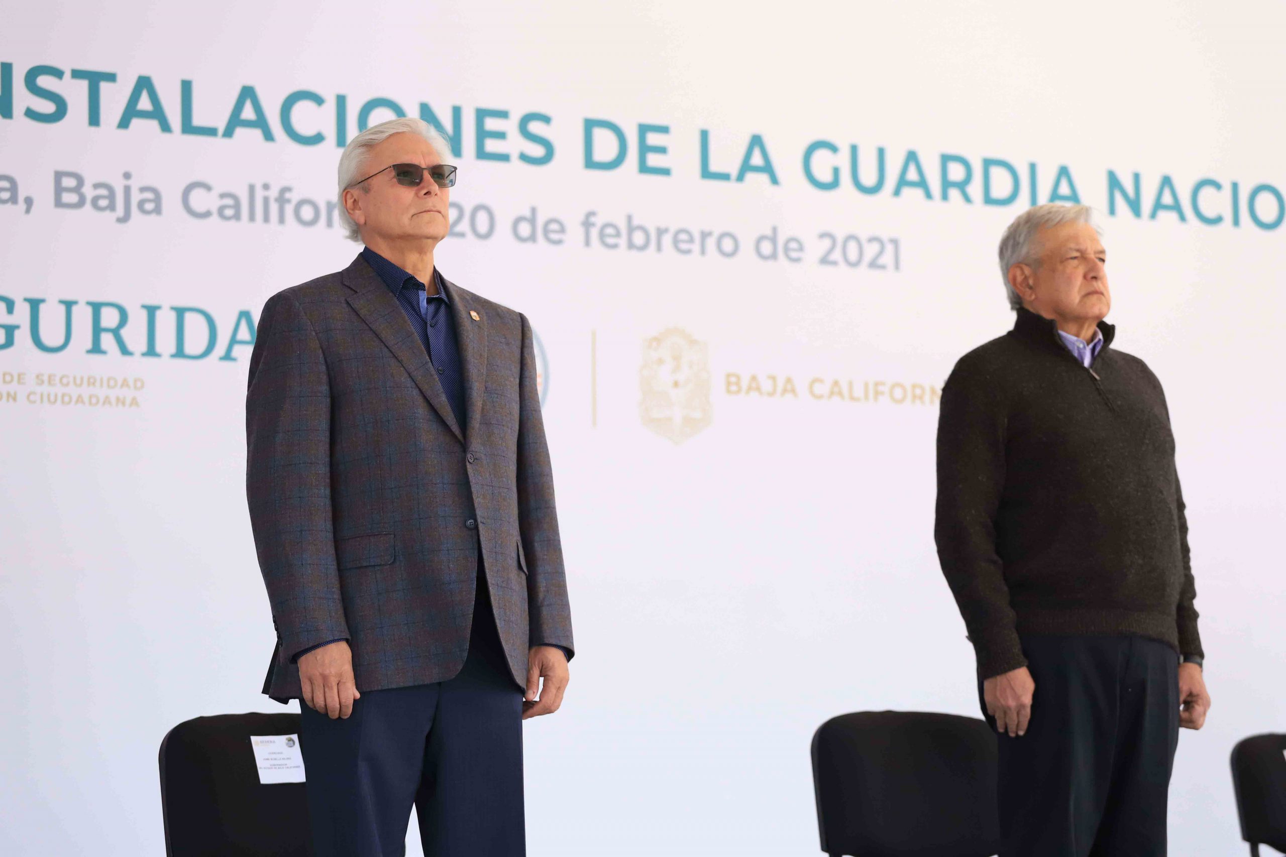 Previo al recorrido por las instalaciones del nuevo Cuartel de la Guardia Nacional, el Presidente López Obrador y el Gobernador Bonilla Valdez, estuvieron acompañados en el presidium por la Secretaria de Seguridad y Protección Ciudadana, Rosa Icela Rodríguez Velázquez; la Alcaldesa de Tijuana, Karla Patricia Ruiz Macfarland; el Secretario de Marina, José Rafel Ojeda Durán; el Subsecretario de la Defensa Nacional, André Georges Foullon Van Lissum; el Comandante de la Guardia Nacional Luis Rodríguez Bucio; el Comandante de la II Región Militar, Celestino Ávila Astudillo; el Comandante de la Segunda Zona Militar, Saúl Luna Jaime y el Coordinador Estatal de la Guardia Nacional, Francisco Javier Hernández Vélez.