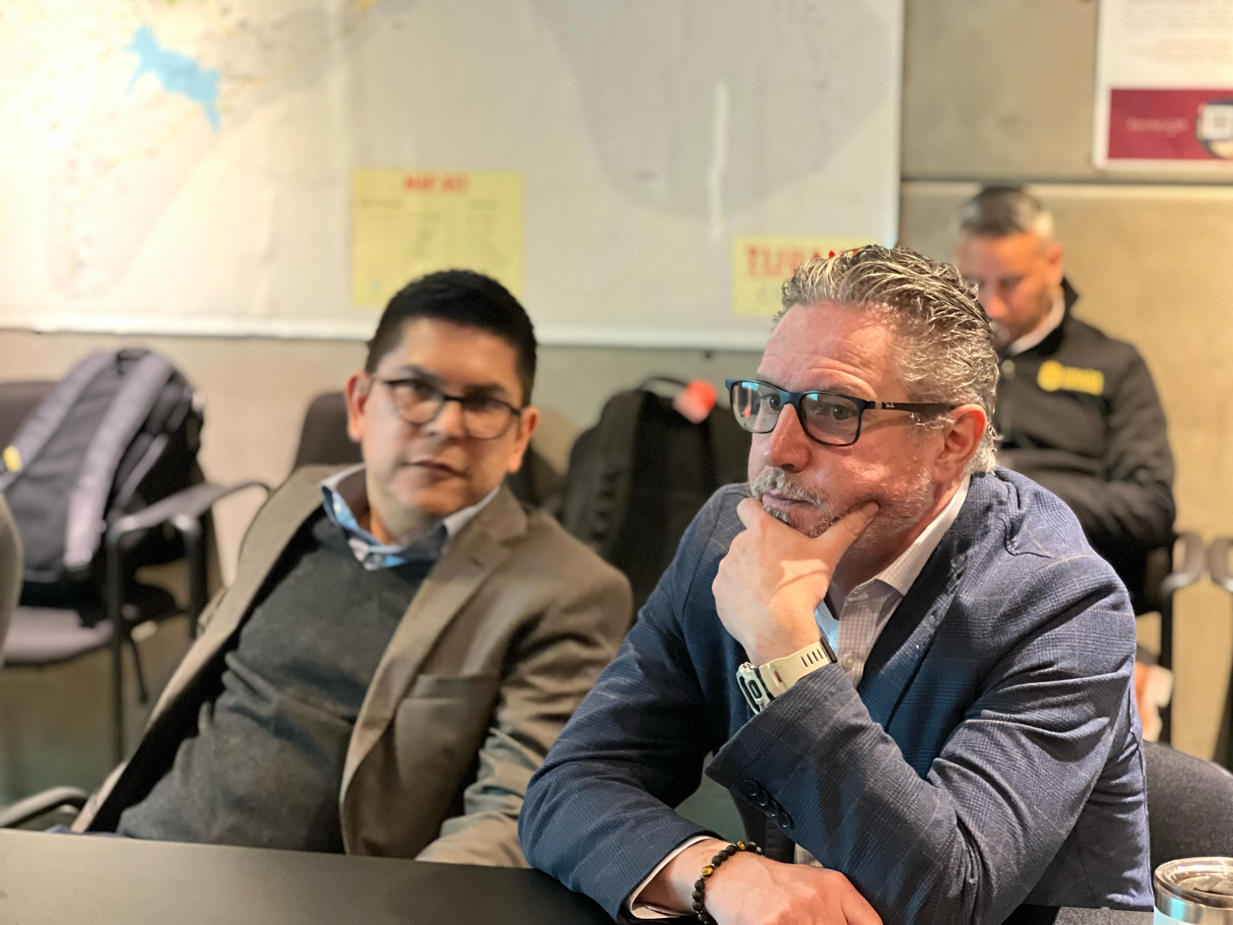 Tijuana, Baja California, a 26 de enero de 2024.- El titular de la Secretaría de Movilidad Urbana Sustentable (SEMOV), Obed Silva Sánchez, sostuvo una reunión con el director del Banco Mundial para México, Colombia y Venezuela, Mark Roland Thomas, donde mostró los avances en la estrategia de reactivación del Sistema Integral de Transporte de Tijuana (SITT).