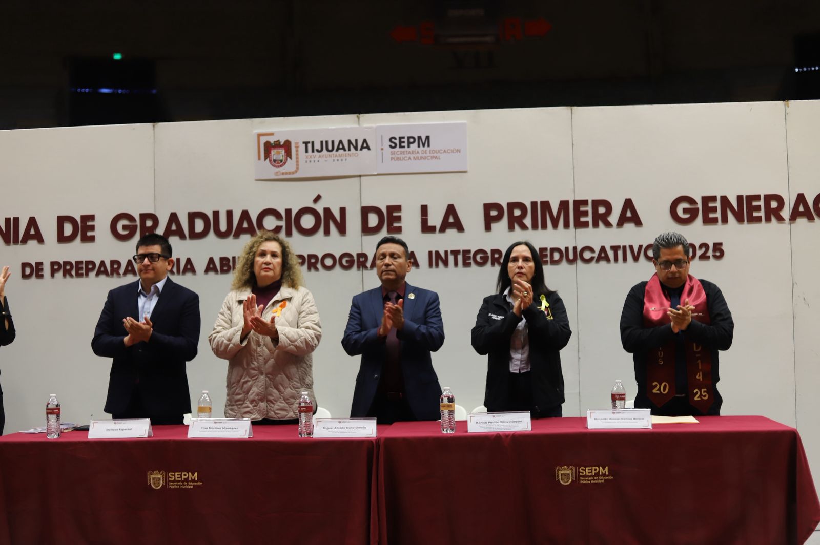 TIJUANA.– La Secretaría de Educación de Baja California, a través de Preparatoria Abierta, llevó a cabo la ceremonia de graduación de la Primera Generación del Programa Integral Educativo 2025 (PIE), adscrito a la Secretaría de Educación Municipal del H. XXV Ayuntamiento de Tijuana.