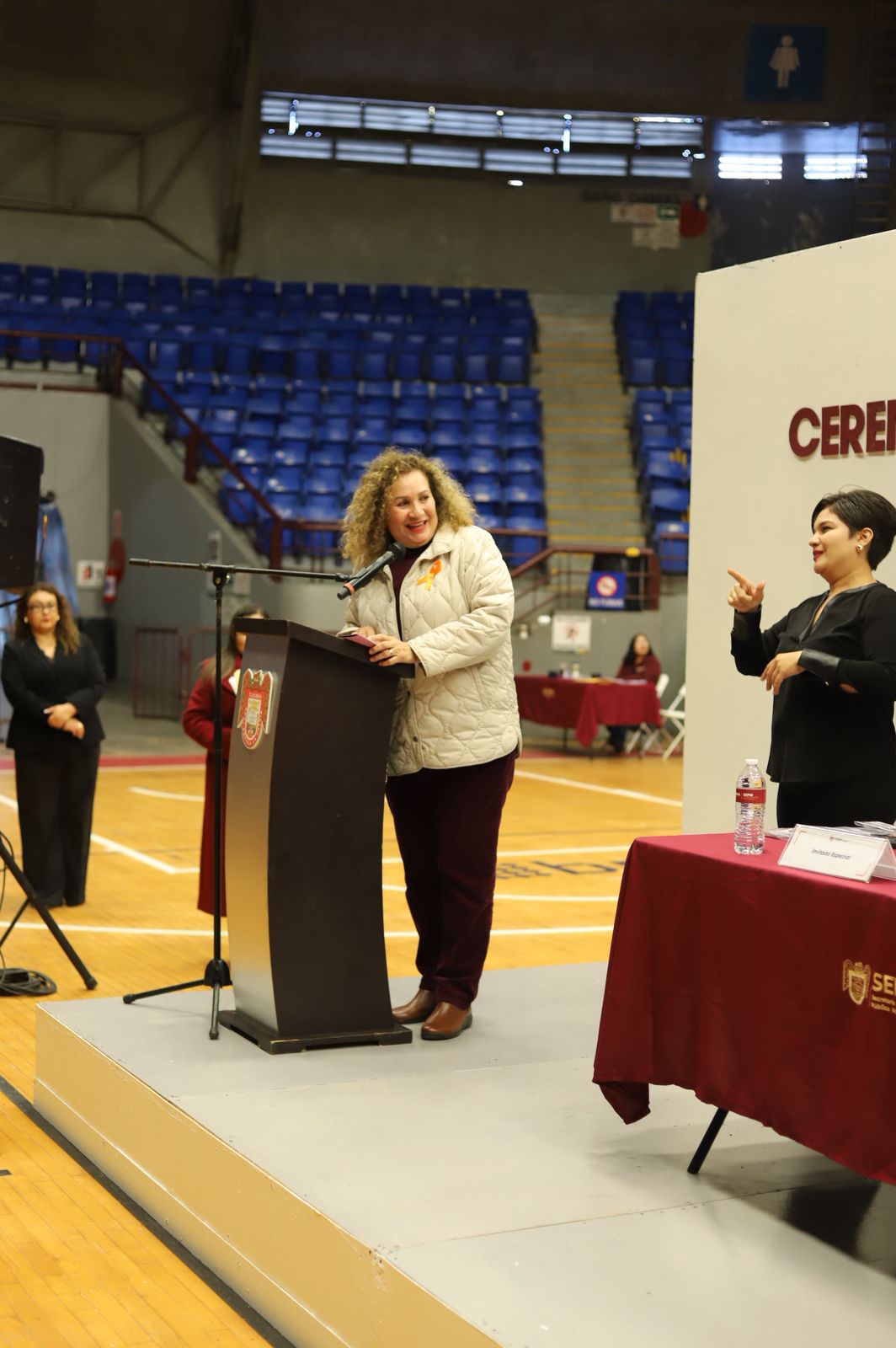 La secretaria de Educación en Baja California, Mtra. Irma Martínez Manríquez, felicitó a las y los graduados y reconoció su esfuerzo, constancia y compromiso para alcanzar sus metas educativas; destacó que este grupo está conformado por personas que, por diversas circunstancias, no pudieron cursar la preparatoria en el tiempo esperado, pero que hoy culminan esta etapa gracias a su dedicación, asimismo, agradeció a la empresa Chevron por impulsar a sus trabajadores a continuar su formación académica.