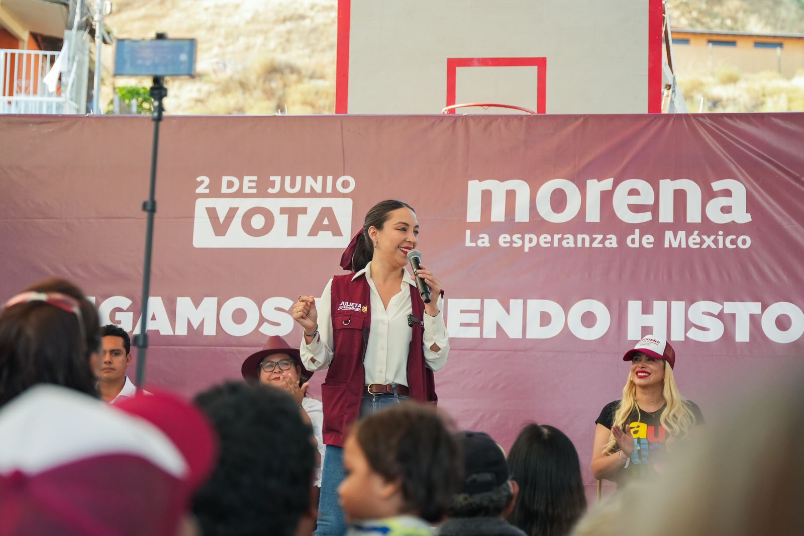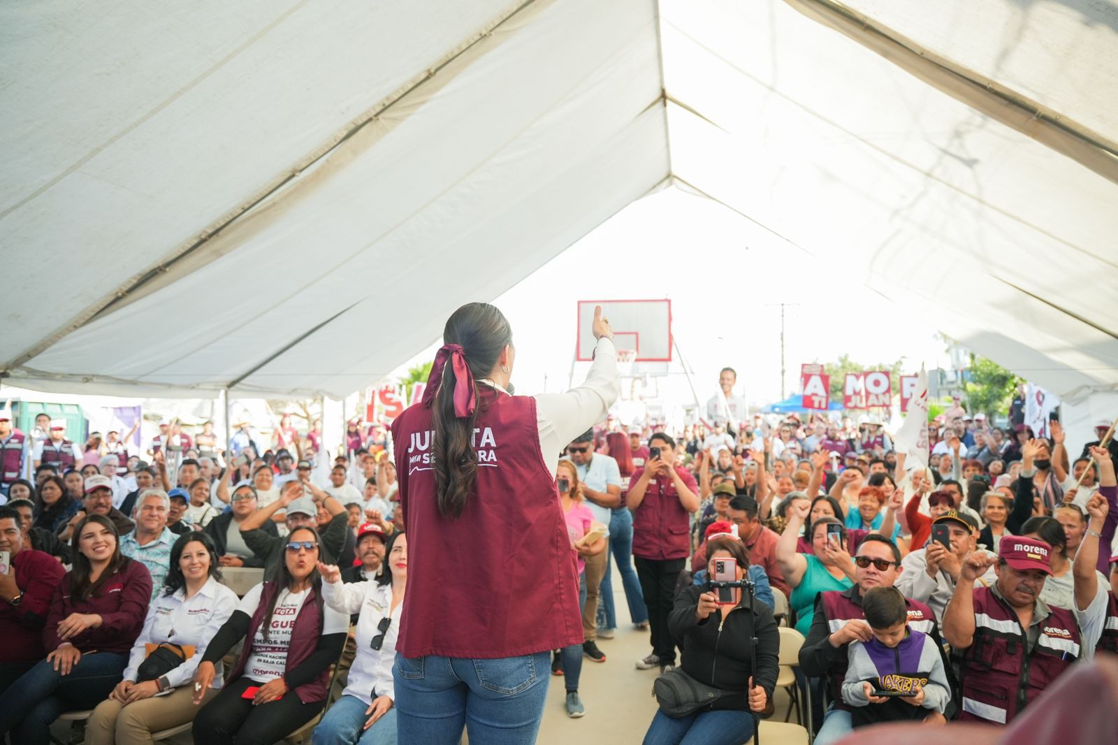 La candidata Julieta Ramírez, en su discurso, mencionó sentir “el espíritu del triunfo” y que “ya ganamos”, lo cual fue coreado por el público con repetidos “ya ganamos”. Ramírez interactuó con los asistentes preguntando quiénes habían apoyado activamente la campaña de Morena, a lo que el público respondió con entusiasmo y afirmaciones de apoyo.