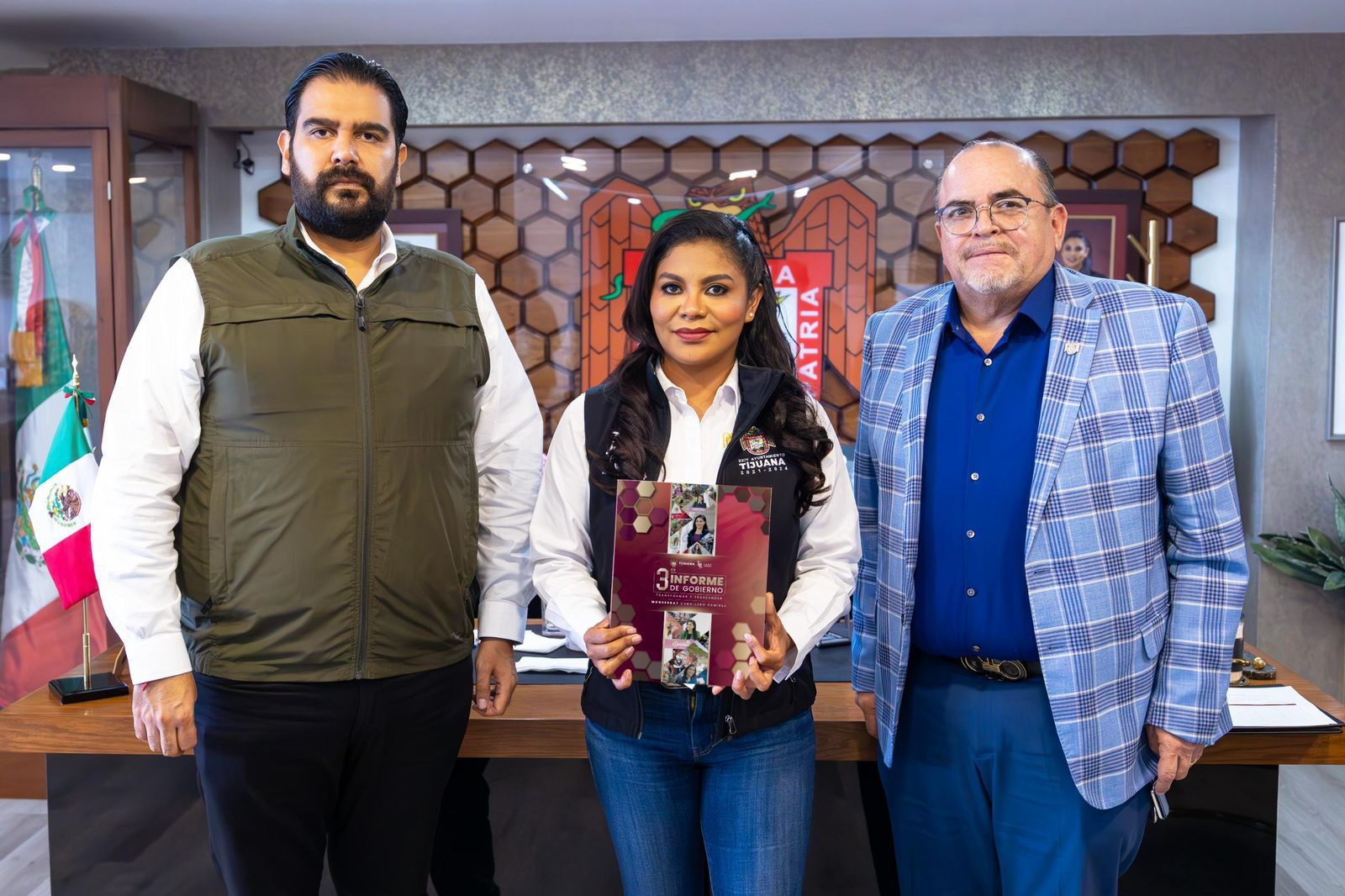Tijuana, Baja California, a 02 de agosto de 2024.- La alcaldesa de Tijuana, Montserrat Caballero Ramírez, presentó su Tercer Informe de Gobierno al frente del XXIV Ayuntamiento, un documento que refleja el compromiso de su administración por dejar una ciudad sin deudas y con cuentas claras.