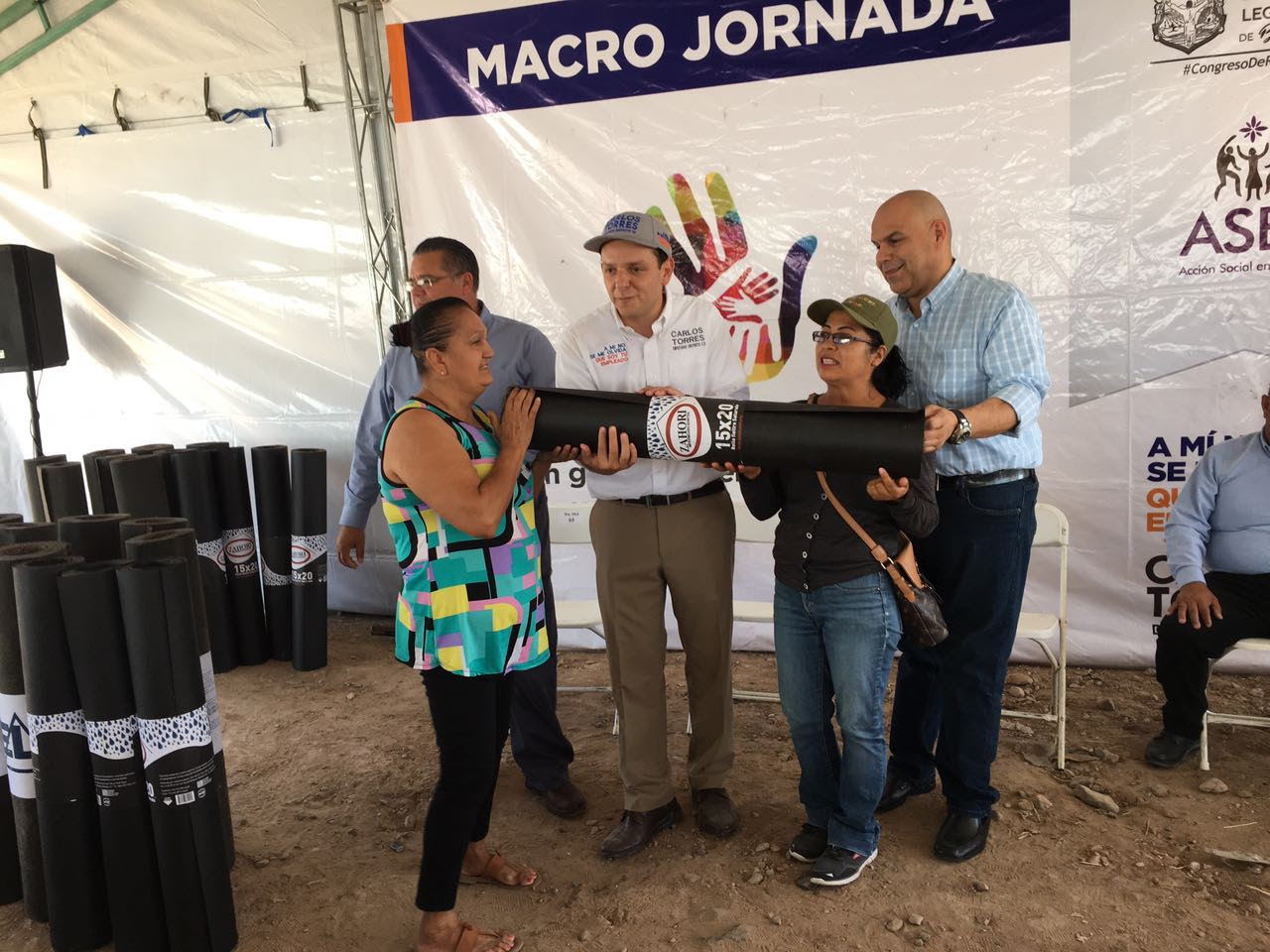 El Diputado del Distrito 13 Carlos Alberto Torres Torres realizo la entrega de material para techos para vivienda a 240 familias de la zona este de Tijuana, además de una Macrojornada de Servicios con la RED Aser, donde participaron más de 16 organismos de sociedad civil y gubernamentales brindando asesoría y asistencia médica, odontológica y oftalmológica a la ciudadanía.