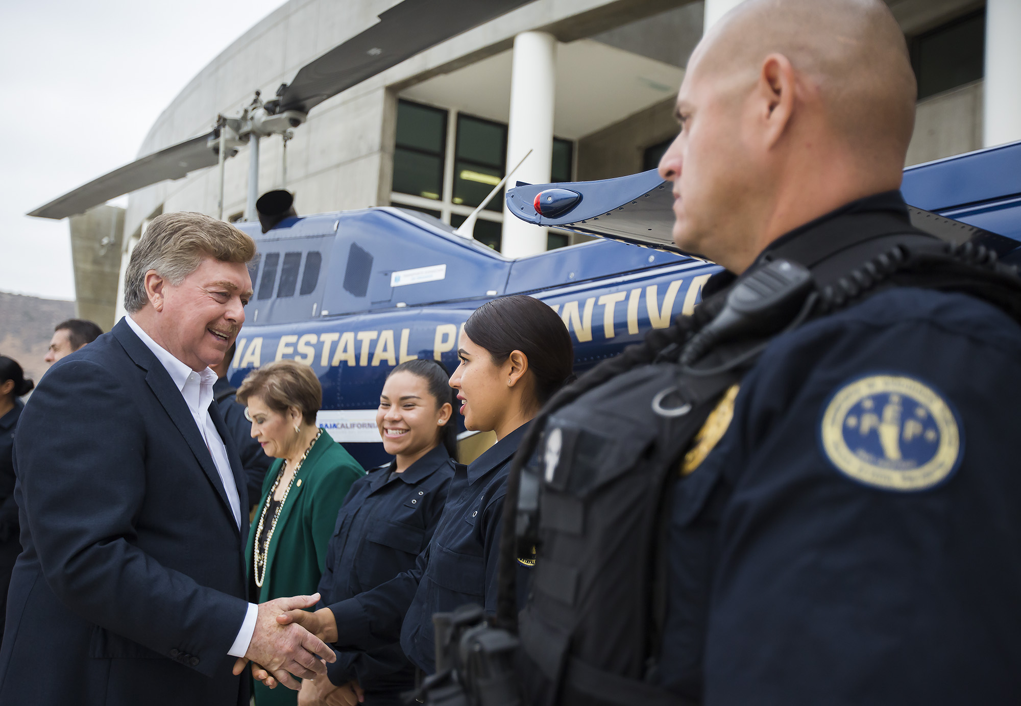 El Gobernador de Baja California, reconoció que el fortalecimiento profesional y logístico de la Policía Estatal es parte de un esfuerzo estratégico para fortalecer los programas de prevención del delito y combate a la delincuencia, labores que se vieron afectadas con la destrucción de la unidad aérea anterior.
