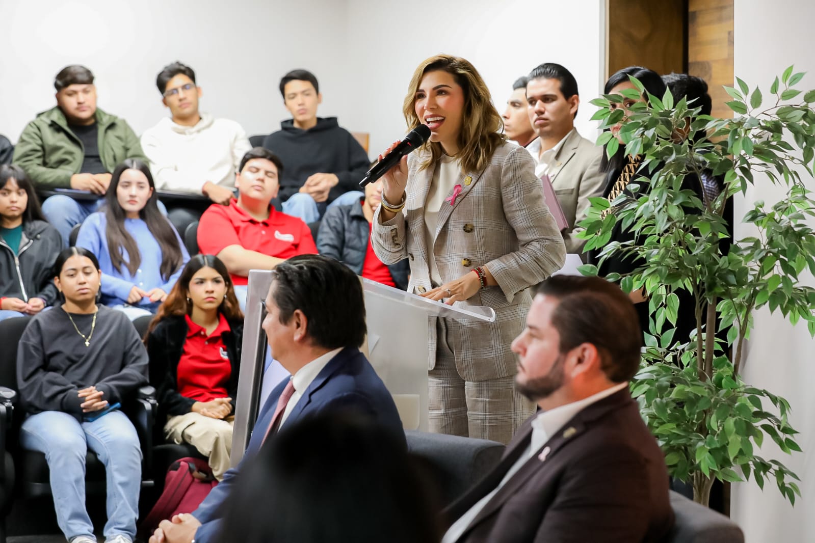 Con la asistencia de más de mil 500 estudiantes de secundaria, preparatoria y universidad, la mandataria del estado encabezó en