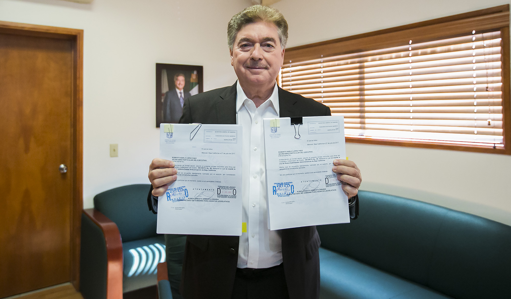 Bajo este esquema, el Mandatario estatal signó el documento que expide la Ley del Sistema Estatal Anticorrupción de Baja California, ello en cumplimiento al mandato constitucional y legal federal de crear el citado sistema, el cual en una primera fase fue presentado como iniciativa en el Congreso del Estado para su análisis y discusión, así como su posterior aprobación.