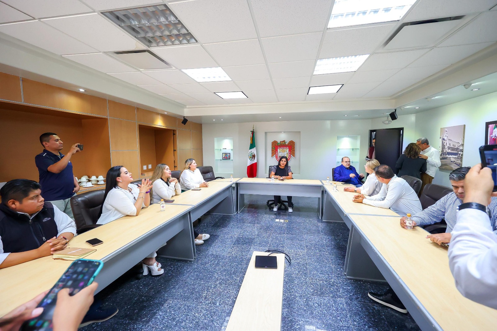 Tijuana, Baja California, 15 de julio de 2024.-Luego de la ausencia de algunos regidores al llamado de la Sesión Extraordinaria de Cabildo por parte de la alcaldesa Montserrat Caballero Ramírez, este lunes, una fracción de éstos solicitó hablar con la presidenta municipal en las propias oficinas de la primera autoridad de Tijuana.