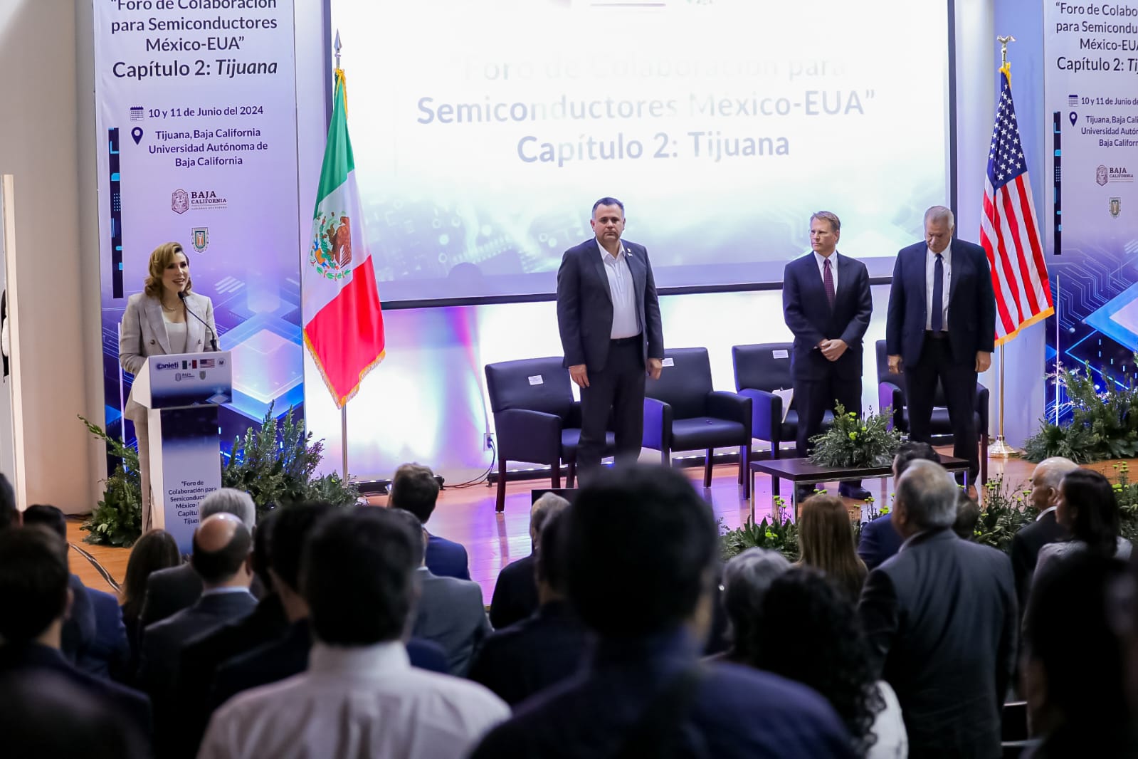 TIJUANA.- Por ser la industria de los semiconductores una oportunidad creciente para generar empleos y bienestar para las familias bajacalifornianas, la gobernadora Marina del Pilar Avila Olmeda encabezó el arranque del Segundo Foro de Colaboración de Semiconductores México-Estados Unidos, que contó con la participación de representantes diplomáticos de ambos países, así como del sector empresarial y de instituciones de educación superior.