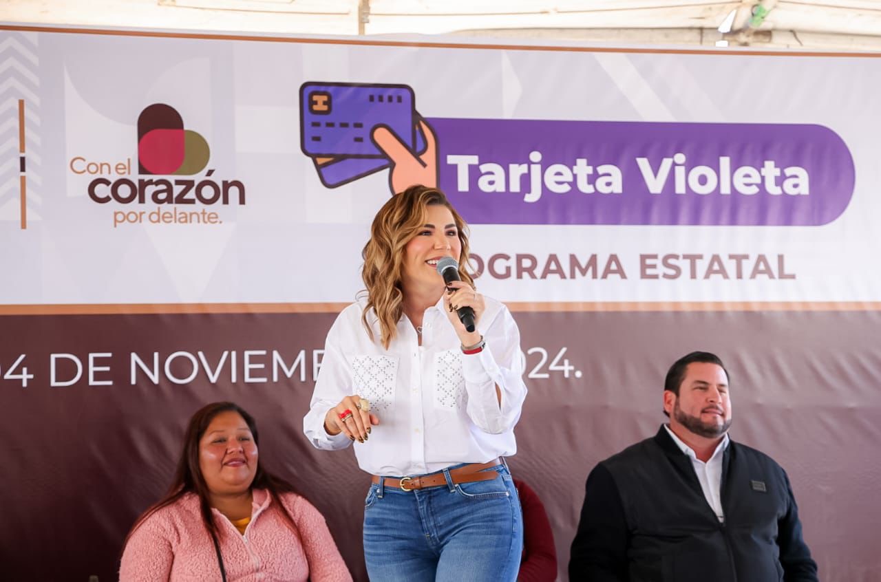 La mandataria explicó que la tarjeta violeta es un programa para apoyar a madres autónomas, ofreciendo alivio financiero y acceso a 14 talleres de oficio que les permitirán generar ingresos extra. Además se proporciona seguimiento gratuito a quienes no completaron su educación primaria o secundaria.