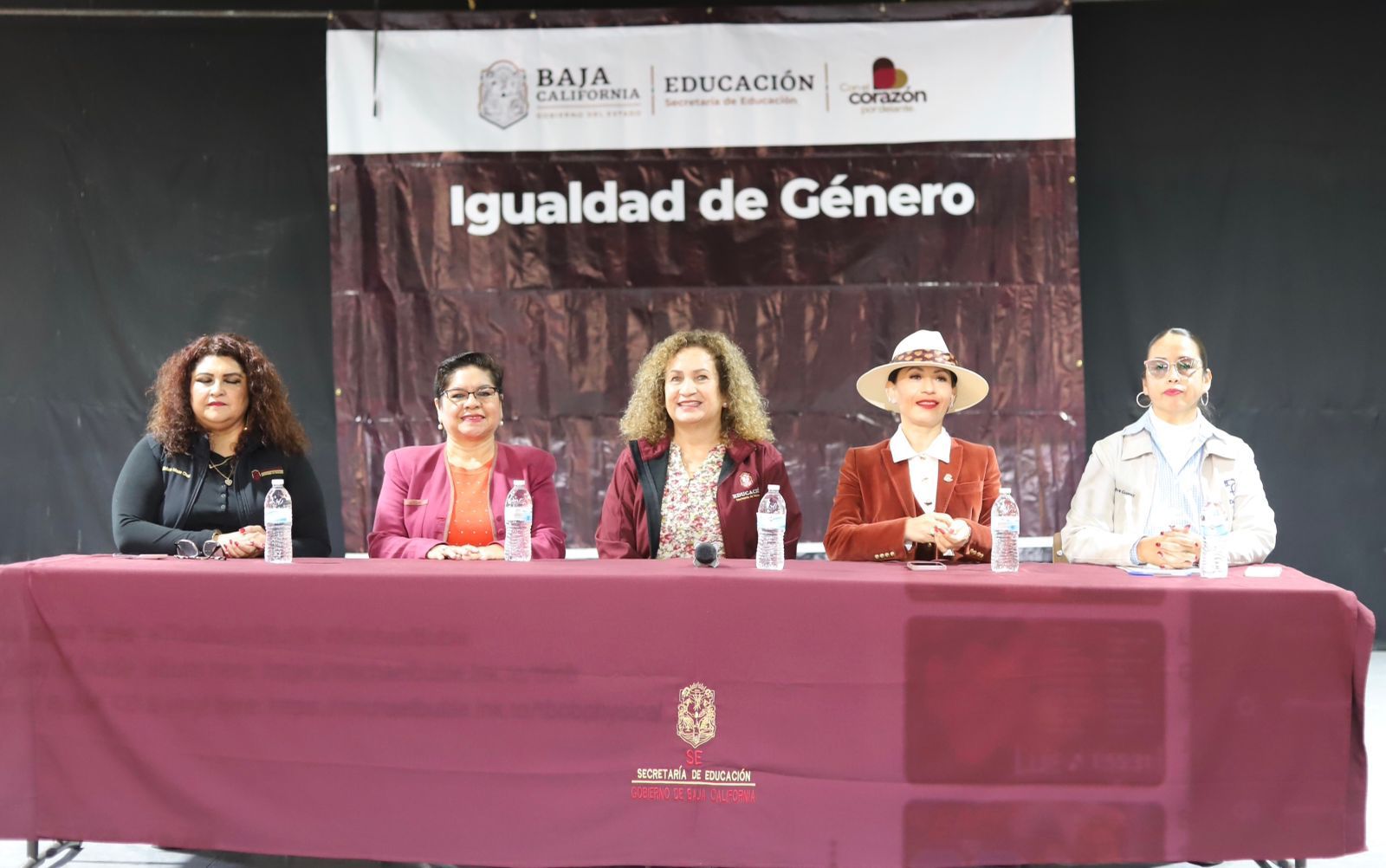 Al evento asistieron la secretaria de Educación en Baja California, Mtra. Irma Martínez Manríquez; la responsable de la Unidad de Género, Mtra. Miriam Meza Chaira; la directora de CEJUM, Lic. Magdalena Bautista Ramírez; la representante de la Secretaría de los Derechos de las Mujeres y Perspectiva de Género, Lic. Minerva Nájera Nájera; y la subdirectora del CBTIS 237, Prof. Olivia Adriana Gómez Favela.